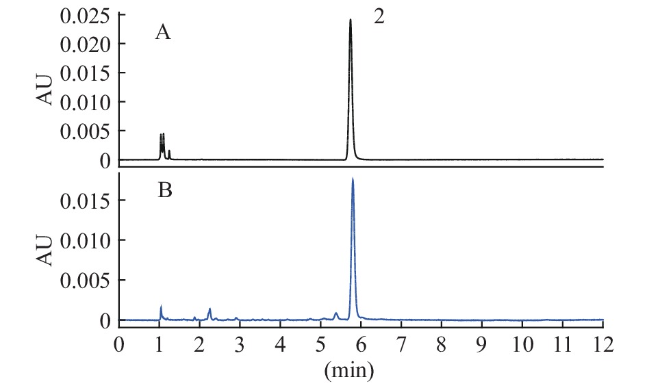 18 (2) column (4.6 mm×250 mm, 5 μm) with the column temperature at 25 ℃. The isocratic elution was adopted with the mobile phase of acetone/MeOH 55:45(V/V) at a flow rate of 1.0 mL·min