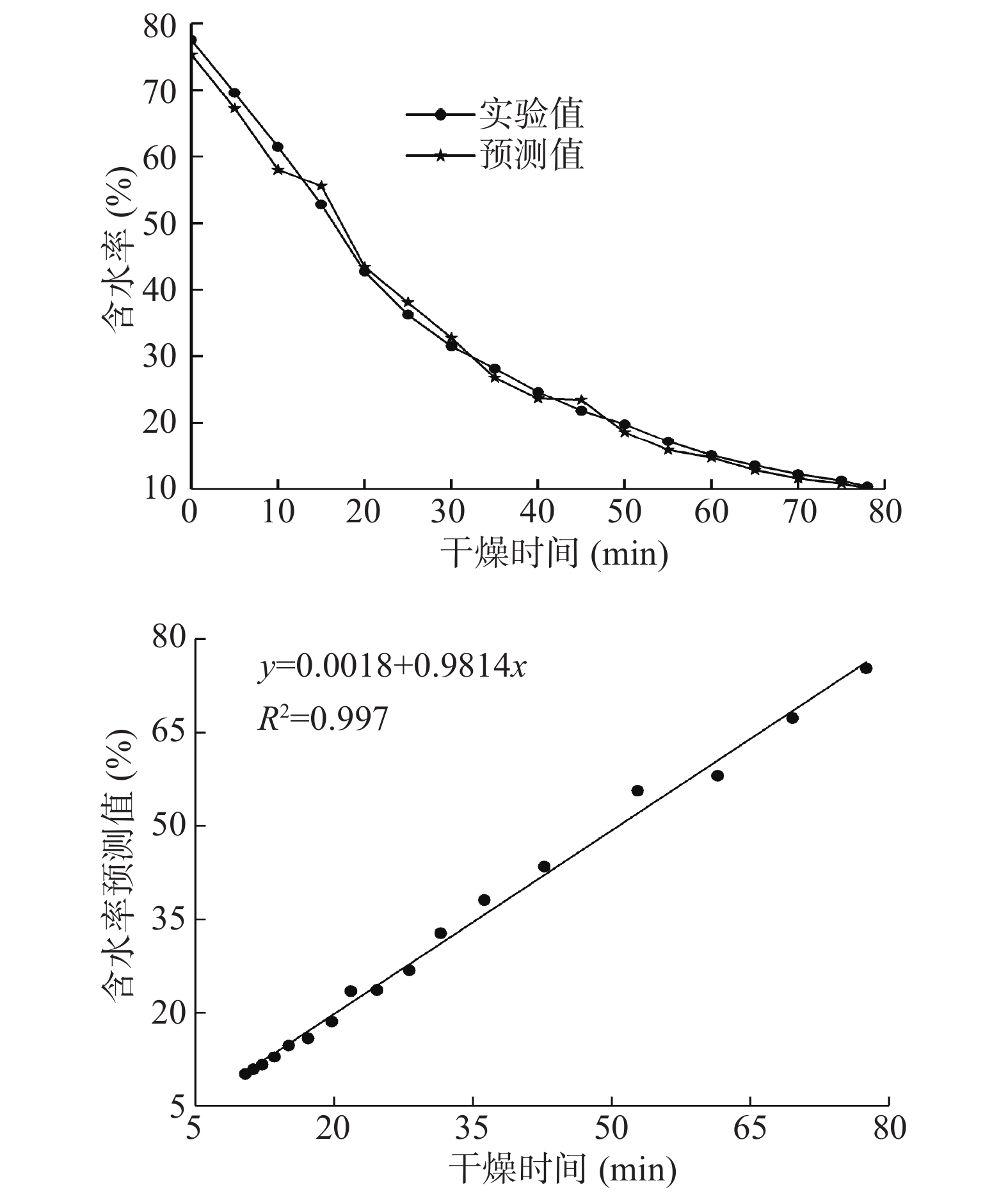 R2 value was 0.996 and root mean square error RMSE was 0.00952 between predicted value and experimental, which could effectively predict the moisture content of hawthorn during microwave drying. The results would provide a theoretical basis for microwave drying application and on-line moisture content prediction of hawthorn.