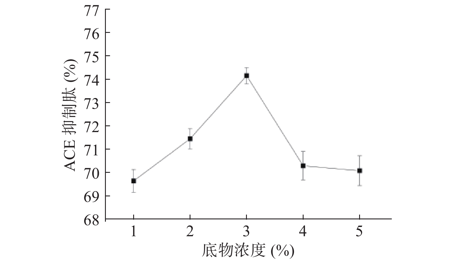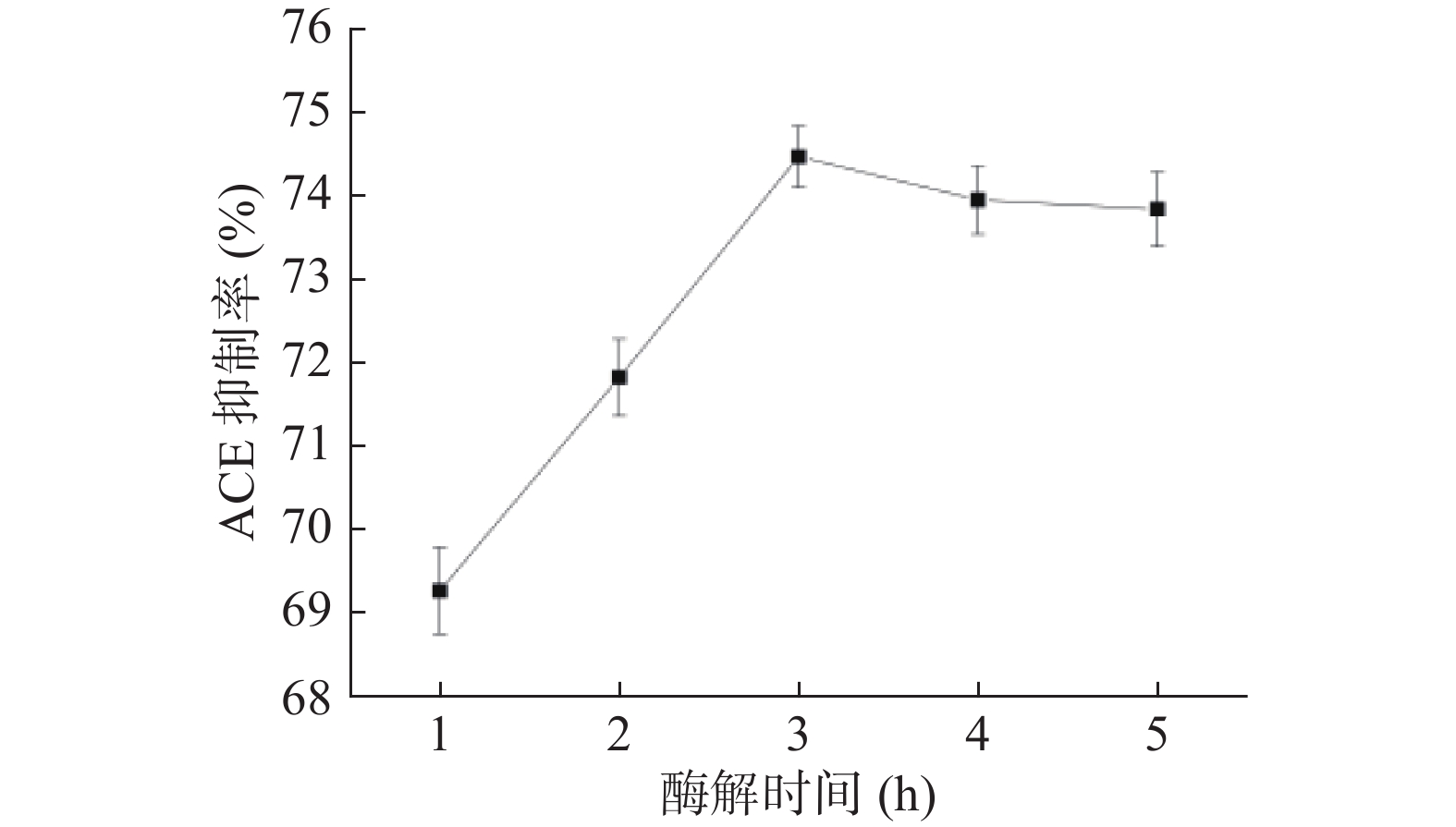 Cyperus esculentus ACE inhibitory peptides were: Substrate concentration 3%, ultrasonic treatment time 20 min, enzymolysis temperature 45 ℃, enzyme addition 5000 U/g, ultrasonic power 180 W, enzymolysis time 3 h, the best auxiliary enzyme-alkaline protease, under this condition, the ACE inhibition rate was 74.16%. This study would provide a theoretical basis for the extraction of