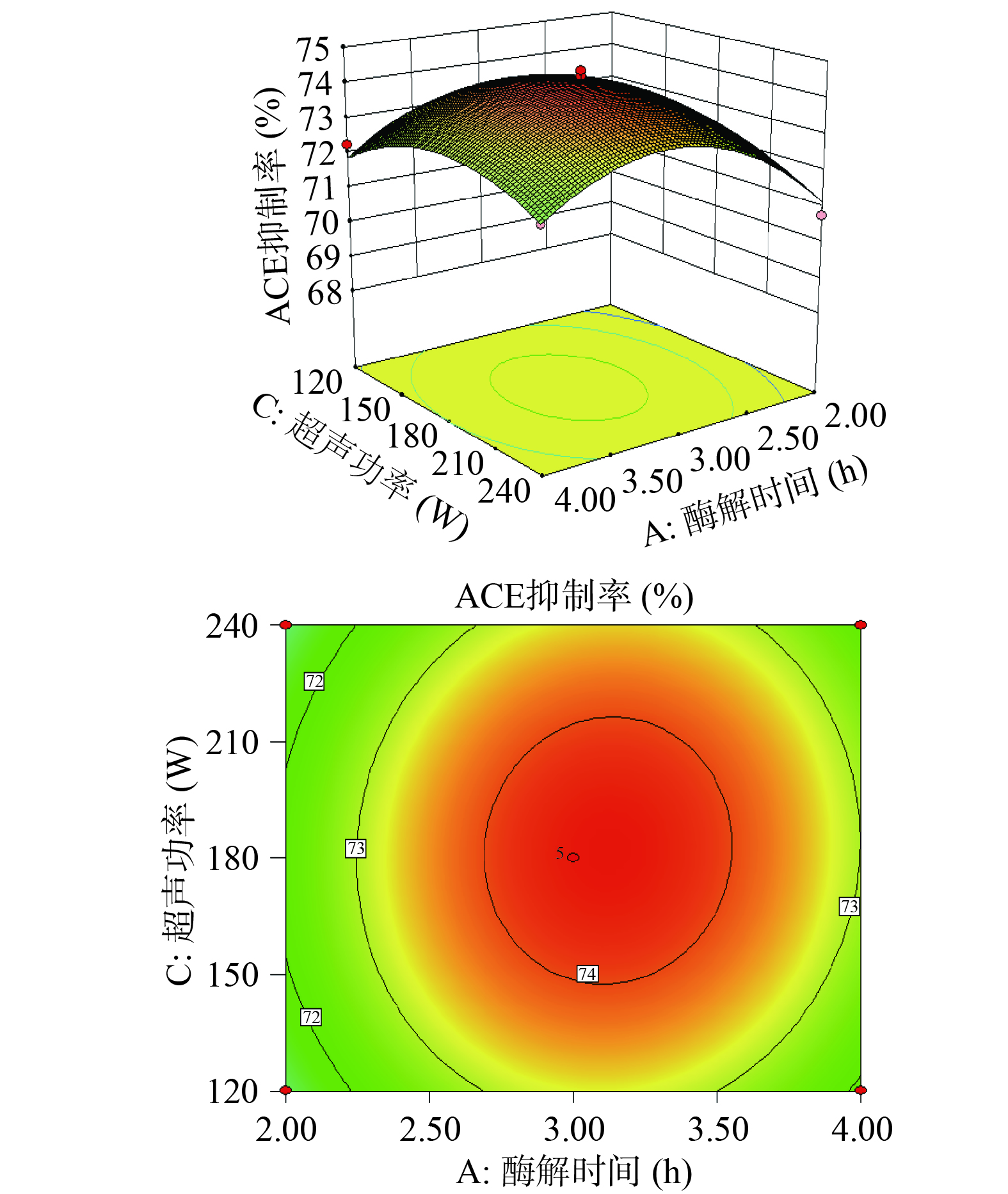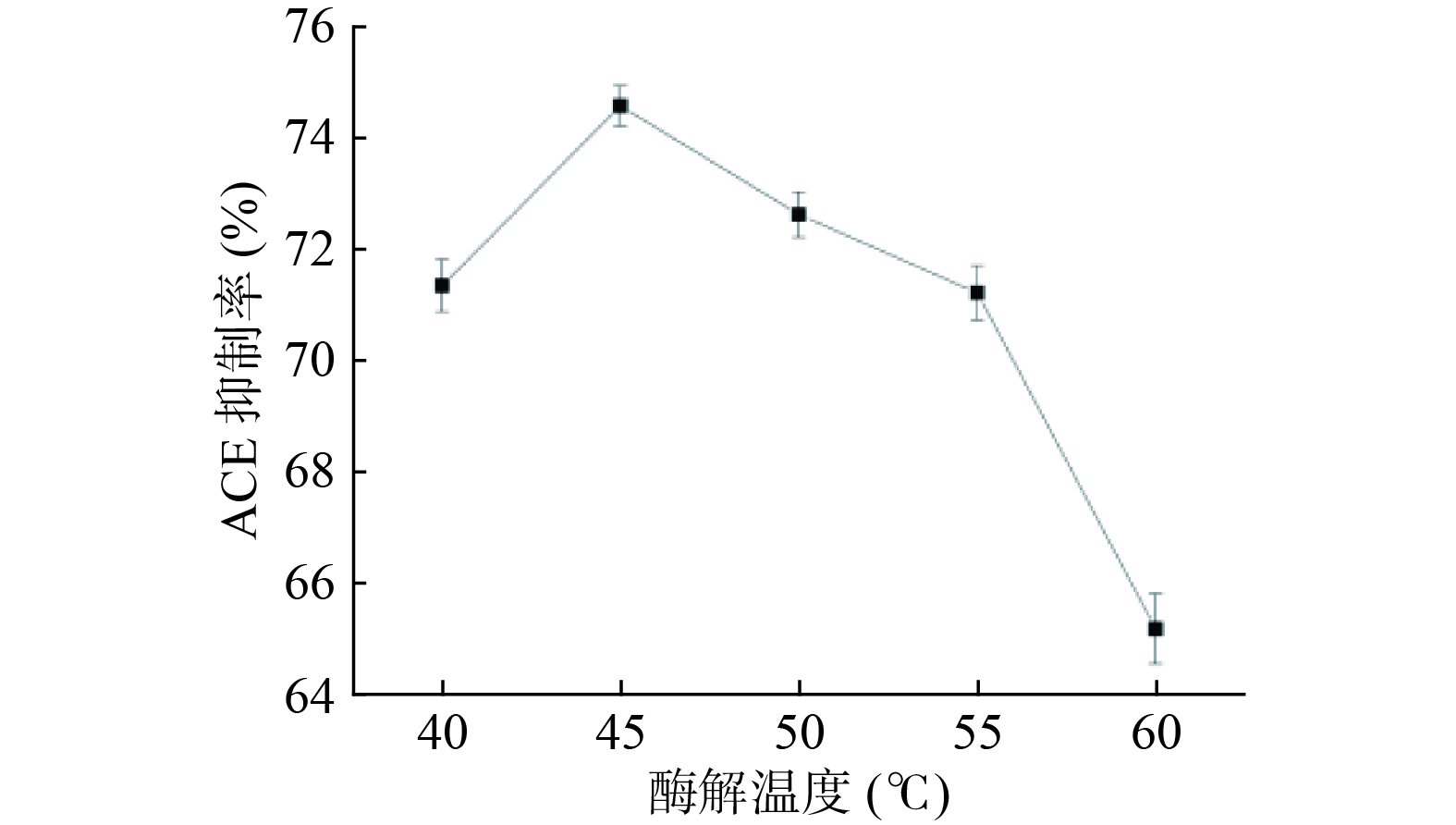 Cyperus esculentus ACE inhibitory peptide, and the best auxiliary enzyme was selected through the inhibition experiment of angiotensin converting enzyme. The results showed that the optimal process conditions for the ultrasonic-assisted enzymatic extraction of