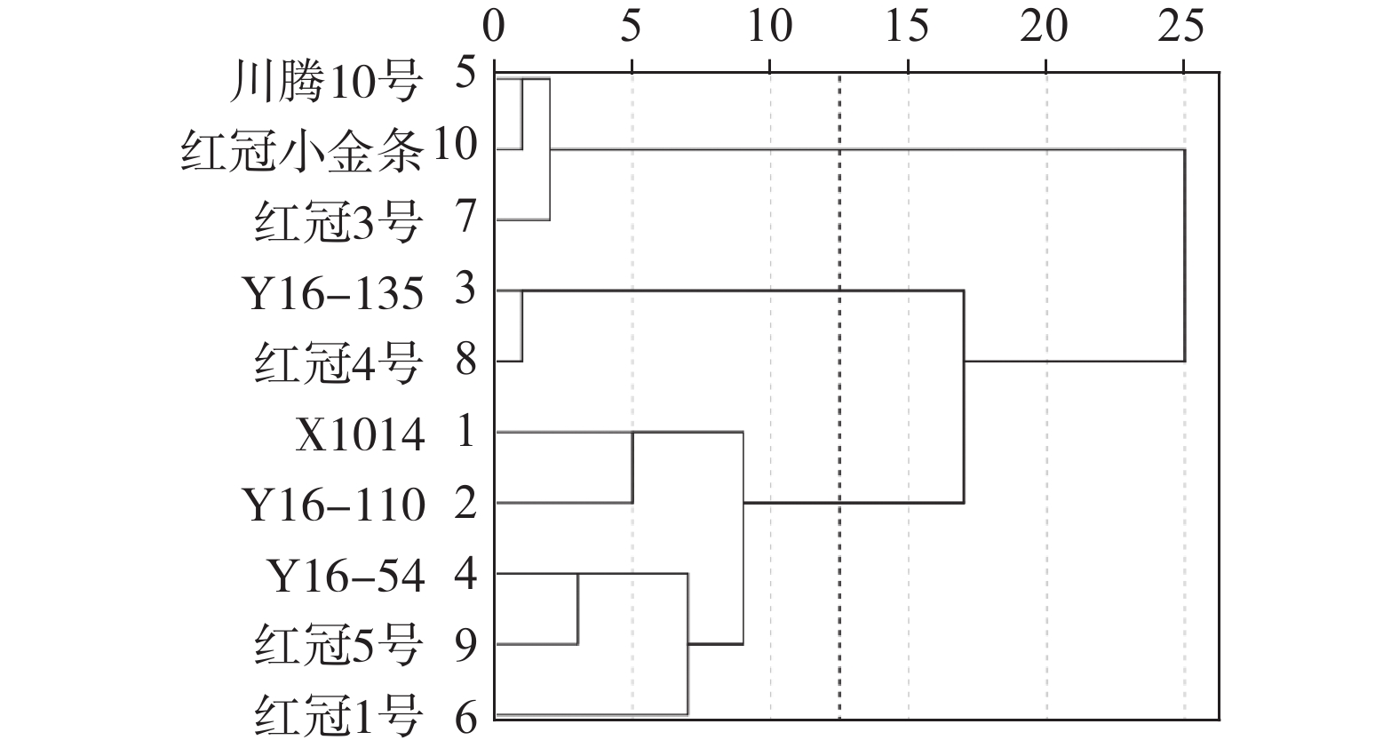 In order to select new pepper varieties of high-quality for drying process, the main quality indexes of 10 new varieties of line pepper were analyzed, such as soluble sugar, capsaicin, dihydrocapsaicin and carotenoid. Through statistical analysis, correlation analysis and membership function analysis, the best comprehensive quality variety was selected as Hongguan No. 4. The samples were divided into three types by cluster analysis, including 2 varieties with high spicy and high carotenoid content, 3 varieties with low spicy and high carotenoid content, and 5 varieties with medium spicy. The results showed that the membership function analysis and cluster analysis were consistent in the order and classification of varieties. This experiment could provide a theoretical basis for the selection of pepper processing varieties.