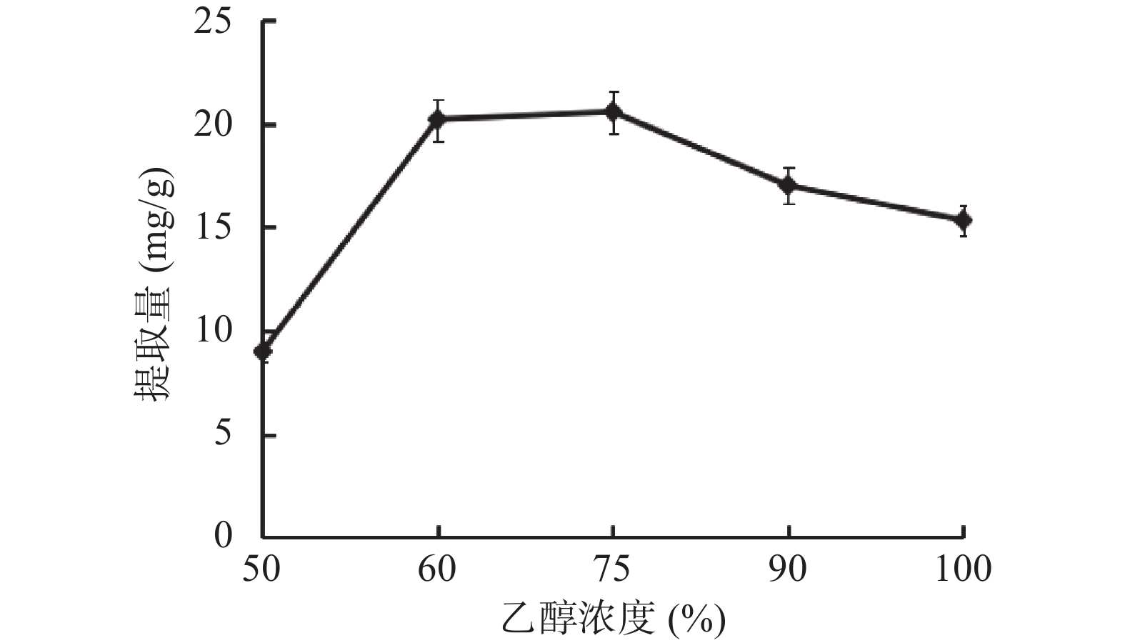 in vitro. Taking the yield of total triterpenes in LA as the evaluation index, the single factor experiments and the response surface methodology were used to optimize the extraction process of ultrasonic-assisted extraction of total triterpenes from LA. The results showed that the optimum extraction conditions were ethanol concentration 89%, ratio of material to liquid 1:33 (g/mL), extraction time 60 min, and ultrasonic power 70% (445 W). The theoretical extraction volume was 39.64 mg/g, and the actual one was (39.95±0.32) mg/g under this optimum condition, which was close to the predicted value. Afterwards, using V