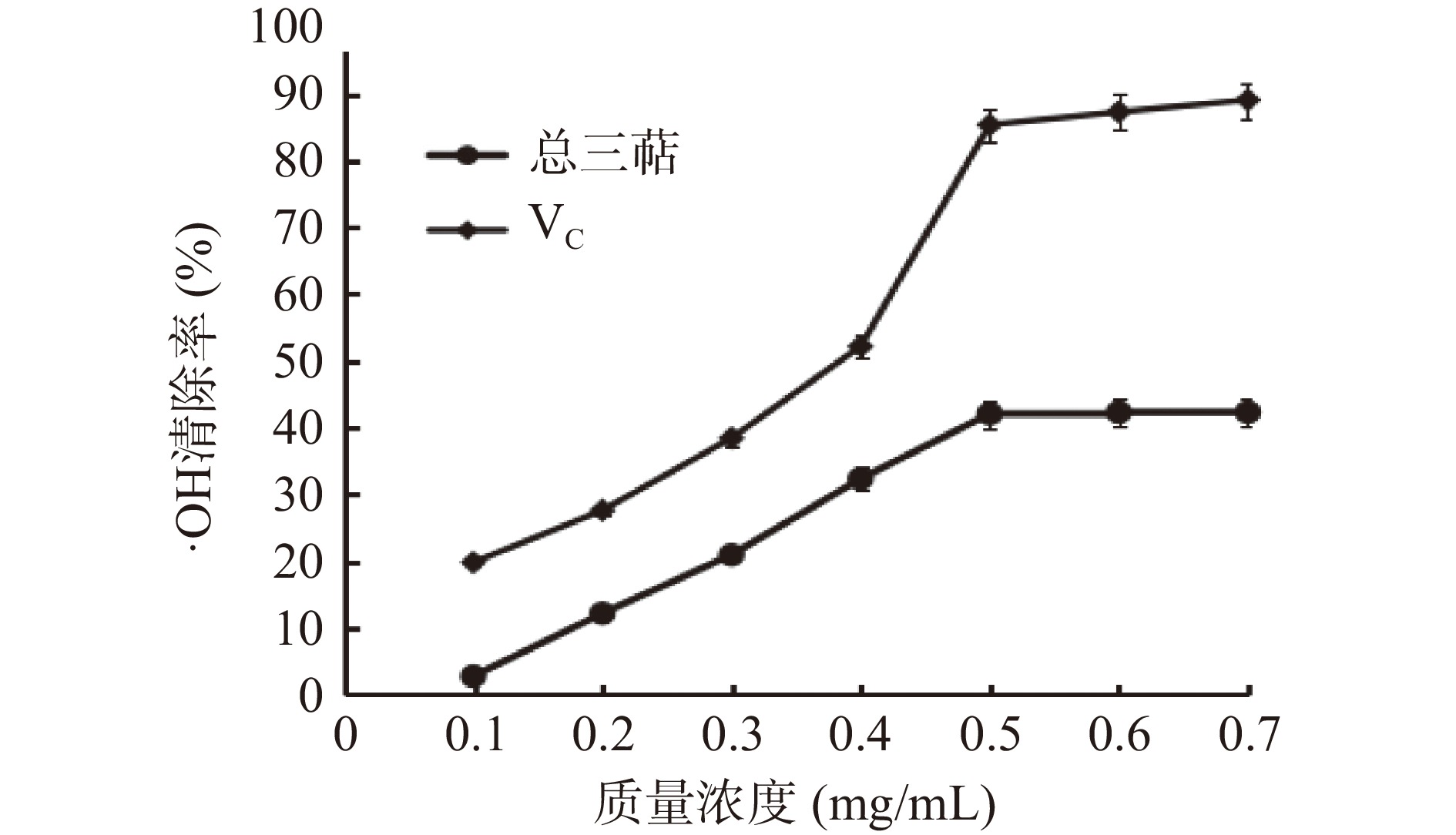 C as a control, DPPH free radical, OH free radical, and O
