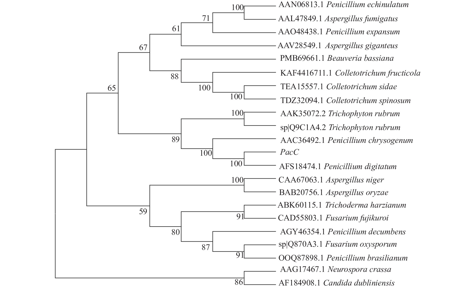 PacC, and the expression level was significantly down-regulated under acidic conditions(