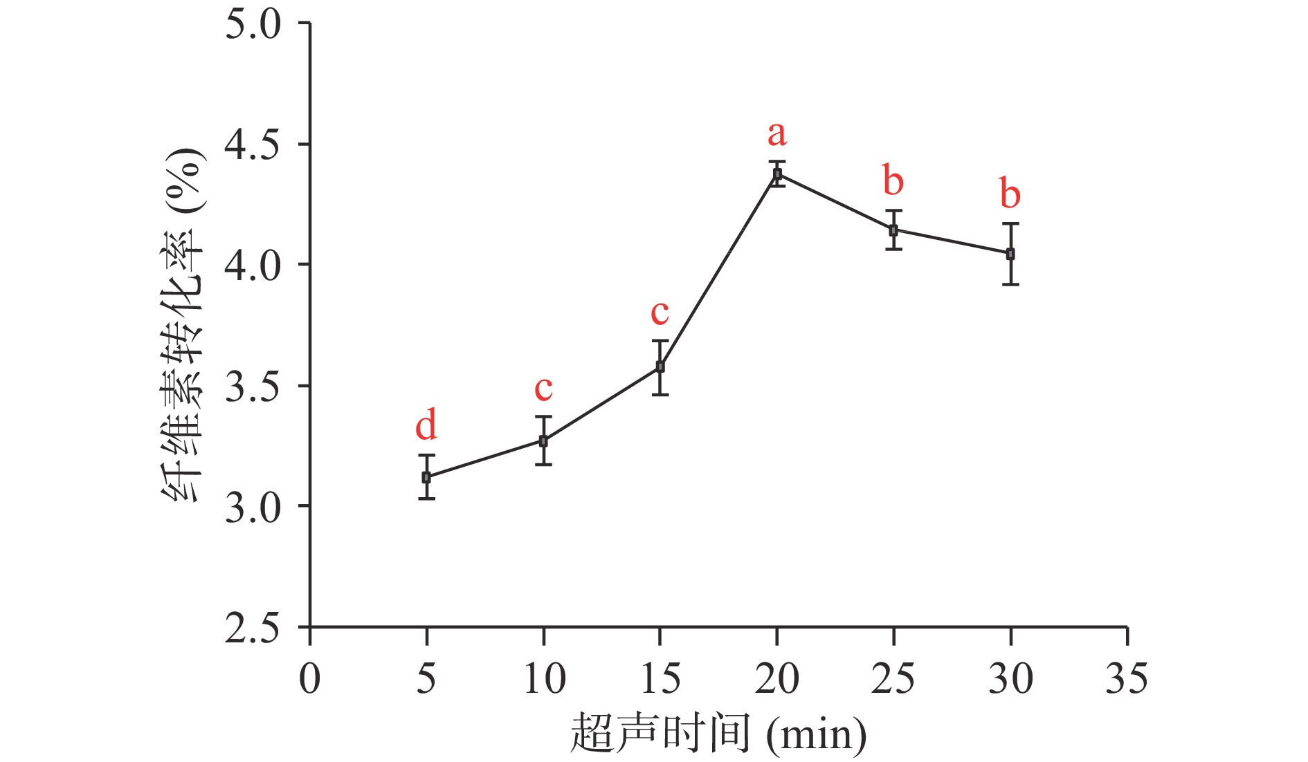 In order to promote the development and utilization of distiller’s grain resources in China, the present study explored the enzymatic hydrolysis conditions of distiller’s grains cellulose based on ultrasonic pretreatment. Firstly, the effects of ultrasound parameters (time, temperature, power) and enzymatic hydrolysis process parameters (time, pH, temperature, enzyme addition, substrate concentration) on the enzymatic hydrolysis of vinasse cellulose were studied through single-factor experiments. The Plackett-Burman test was carried out to screen out the key factors which affected the enzymatic hydrolysis reaction, and then the Box-Behnken test was used to optimize the enzymatic hydrolysis process. The Plackett-Burman test results showed that the key factors affecting the enzymatic hydrolysis of vinasse cellulose were ultrasound time, enzymatic hydrolysis time, enzymatic hydrolysis pH, and enzyme addition. The Box-Behnken results showed that the optimal enzymolysis process conditions were ultrasonic time 21 min, enzymolysis time 140 min, enzymatic hydrolysis pH5.41, enzyme addition 990 U/g, ultrasonic temperature 60 ℃, ultrasonic power 200 W, enzymolysis temperature 50 ℃, and the concentration of enzymatic hydrolysis substrate 1:20 g/mL. Under these conditions, the cellulose conversion rate of distiller’s grains were 5.62%, which was 35.4% higher than that of the control group. The results showed that ultrasonic pretreatment was an effective way to improve the cellulose conversion rate of distiller’s grains.