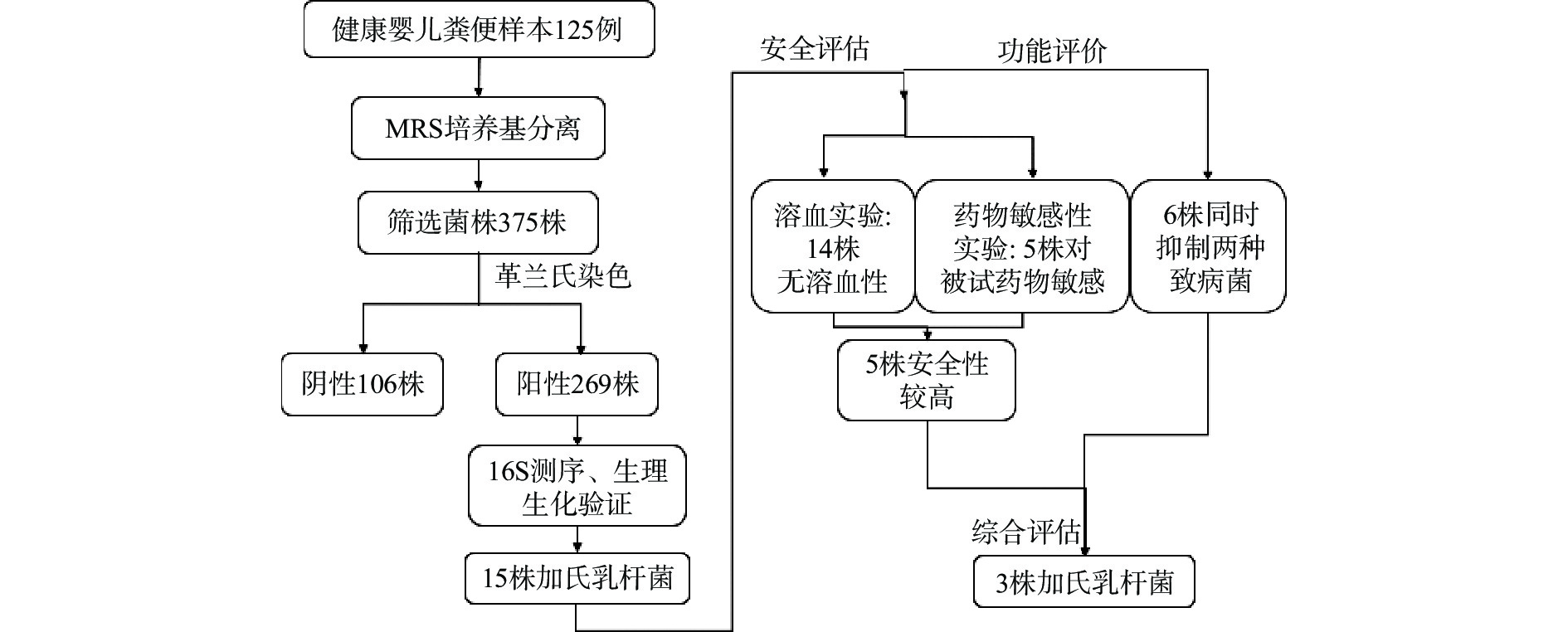 Lactobacillus gasseri from 125 fecal samples of healthy infants, and to evaluate its safety and antimicrobial activity. Methods: In this study, fecal samples of 1-month-old healthy infants were taken, and the strains were separated by MRS medium, Gram staining, biochemical identification and 16S rRNA sequencing technology were used to strain identification. Subsequently, the hemolysis of the isolated