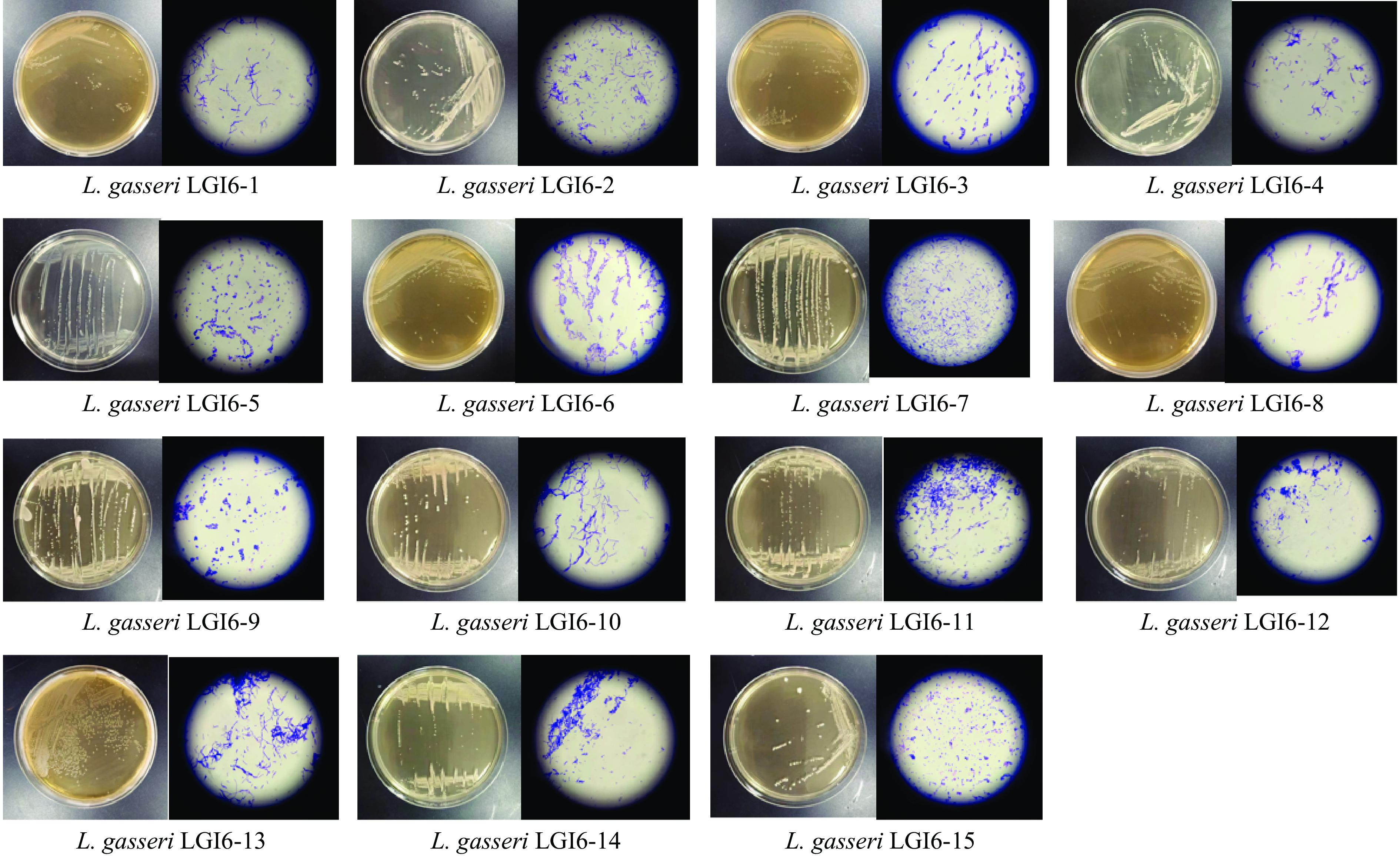 L. gasseri was evaluated by blood agar. The drug sensitivity of antibiotics was determined by micro broth dilution method, and the safety of the isolated strains were evaluated. Finally, the inhibitory effects of the 15 isolated