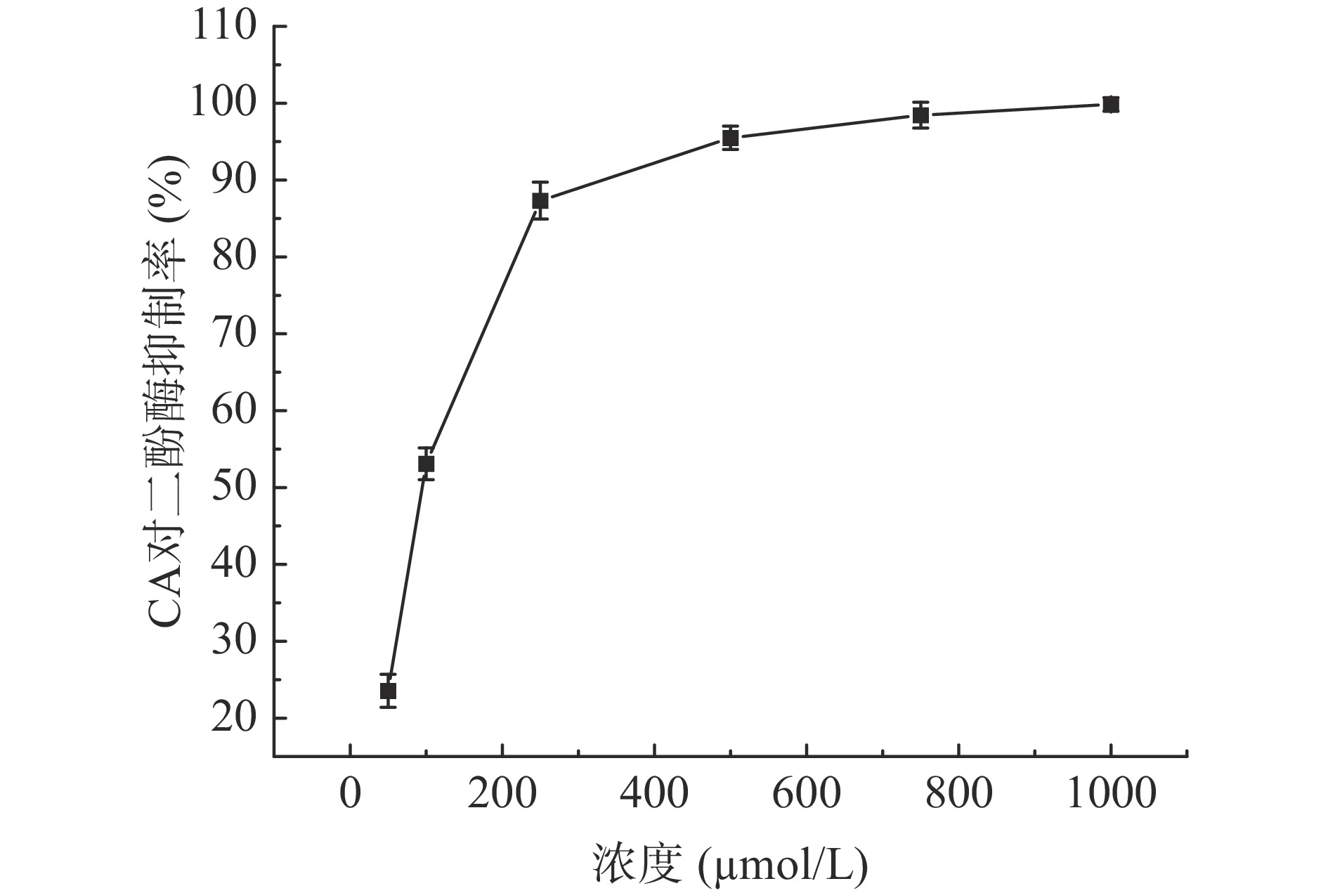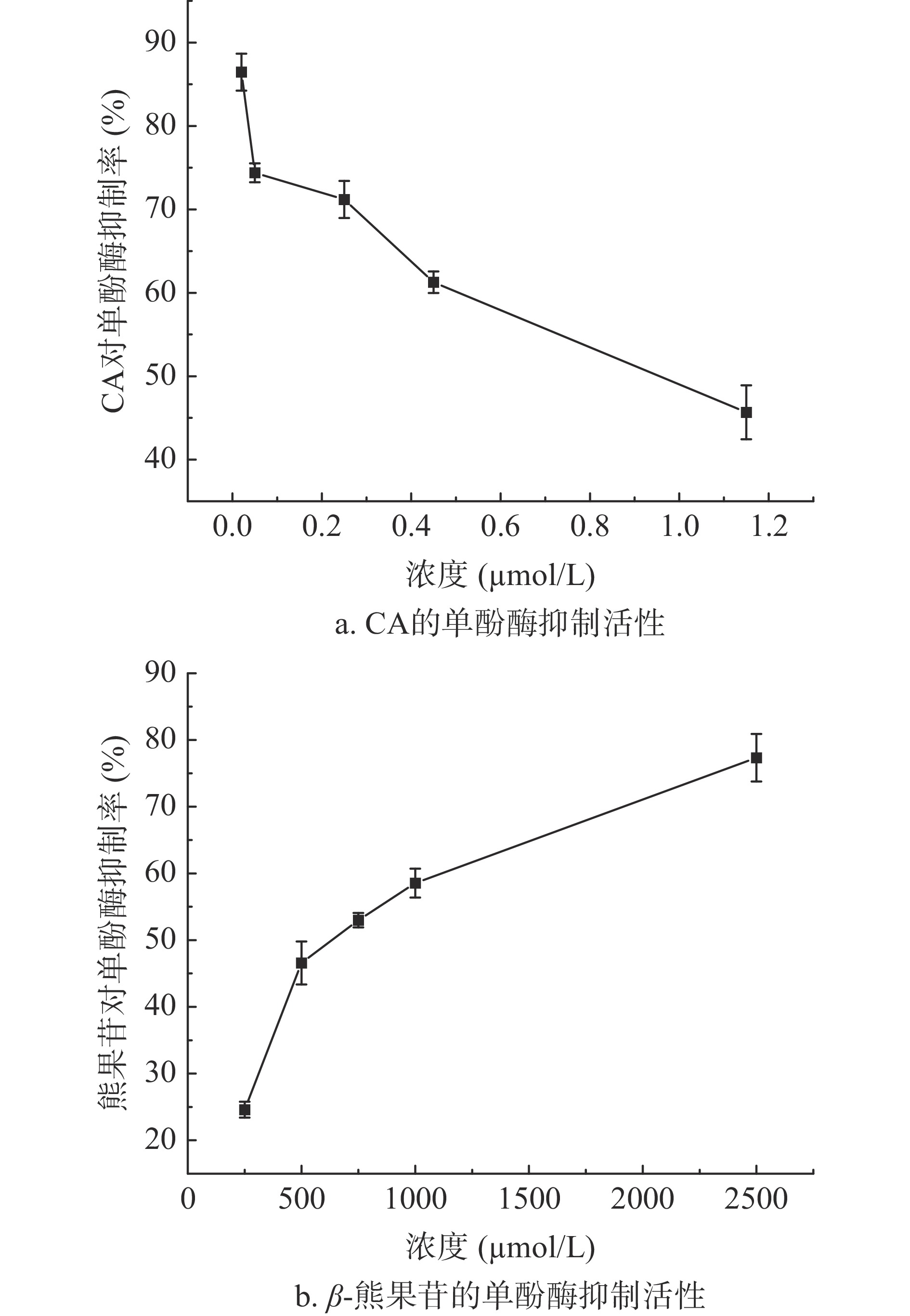 β-arbutin. In addition, the inhibitory activities of all three phenolic compounds of Quezui tea were significantly different. CA had inhibitory effects on both monophenolase and diphenolase activities with IC