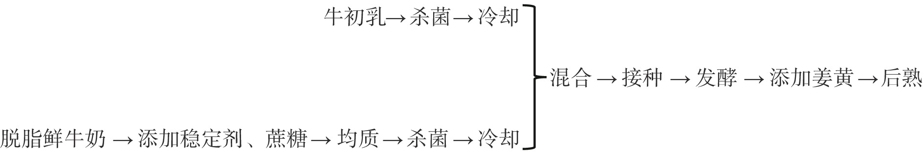 In order to develop a kind of turmeric bovine colostrum fermented milk with high antioxidant capacity, the formula of turmeric bovine colostrum fermented milk was optimized by response surface analysis on the basis of single factors, with sensory evaluation as the response value, and the physicochemical indexes and antioxidant activity of the product were analyzed. The results showed that the optimal fermentation process of turmeric bovine colostrum was as follows: Curcumin microcapsule dosage of 0.5%, inoculum dosage of 2%, colostrum dosage of 30%, sucrose dosage of 6%, and the sensory score of fermented milk reached 91.24. The hardness of turmeric colostrum fermented milk was 0.97 N, elasticity was 3.96 mm, viscosity was 0.83 N, cohesion was 0.83, viscosity was 0.62 mJ, acidity was 88.63 °T, protein content was 3.98 g/100 g, fat content was 0.46 g/100 g, lactic acid bacteria count was 6.59×10