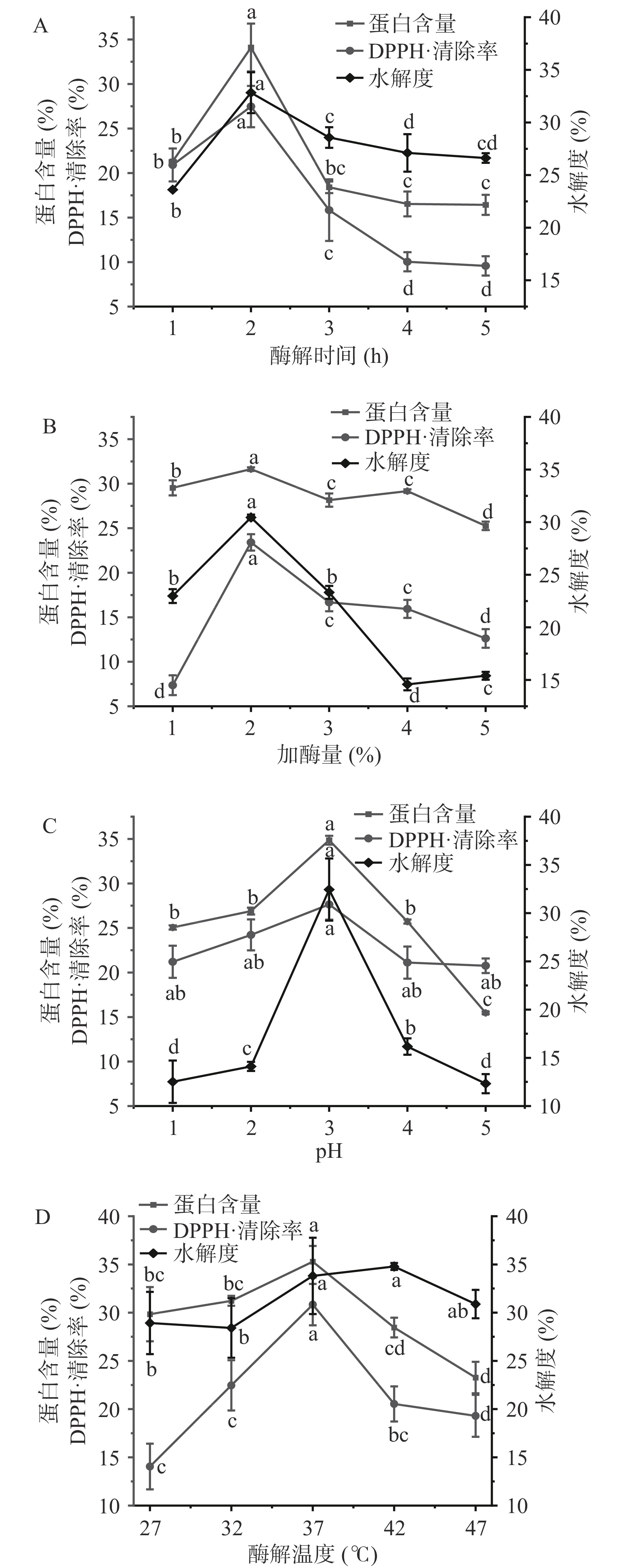 The enzymatic hydrolysis of bovine bone marrow protein (BBMP) was optimized and its physicochemical properties and antioxidant activities were studied, aimed to explore the material basis of its potential medicinal and health benefits and enhance the comprehensive utilization value of beef bone. The degree of hydrolysis (DH), protein content, and 1,1-diphenyl-2-trinitrophenylhydrazine free radical (DPPH·) scavenging rate were used as evaluation indexes, combined with the results of structural characterization, the suitable enzyme was screened. The response surface methodology was used to the optimization of enzymatic hydrolysis of bovine bone marrow protein as the hydrolysis time, enzyme concentration, pH, and temperature were independent variables. Then, the physicochemical properties and antioxidant activities of the obtained hydrolysates were investigated. The results showed that pepsin was selected as the optimal protease for the preparation of BBMP pepsin hydrolysate (BBMP-PH). The optimum enzymatic hydrolysis conditions were time 2 h, enzyme concentration 2%, pH3, and temperature of 37 ℃. Under these conditions, the DH, protein content, and DPPH· scavenging rate were 36.07%, 37.05%, and 39.57%, respectively. The effects of four factors on the efficiency of enzymatic hydrolysis were ordered as: Enzyme concentration>enzymatic hydrolysis time>enzymatic hydrolysis temperature>pH. The results of physicochemical properties showed that the isoelectric point (pI) of BBMP-PH was about pH6, and the solubility, emulsifying activity, emulsion stability, and water holding capacity of BBMP-PH were up to their lowest value at pI, and the better when far from the pI. When pH was 2, BBMP-PH has the highest solubility (94.72%), whereas pH8 for the emulsifying activity and emulsion stability (1.11 m