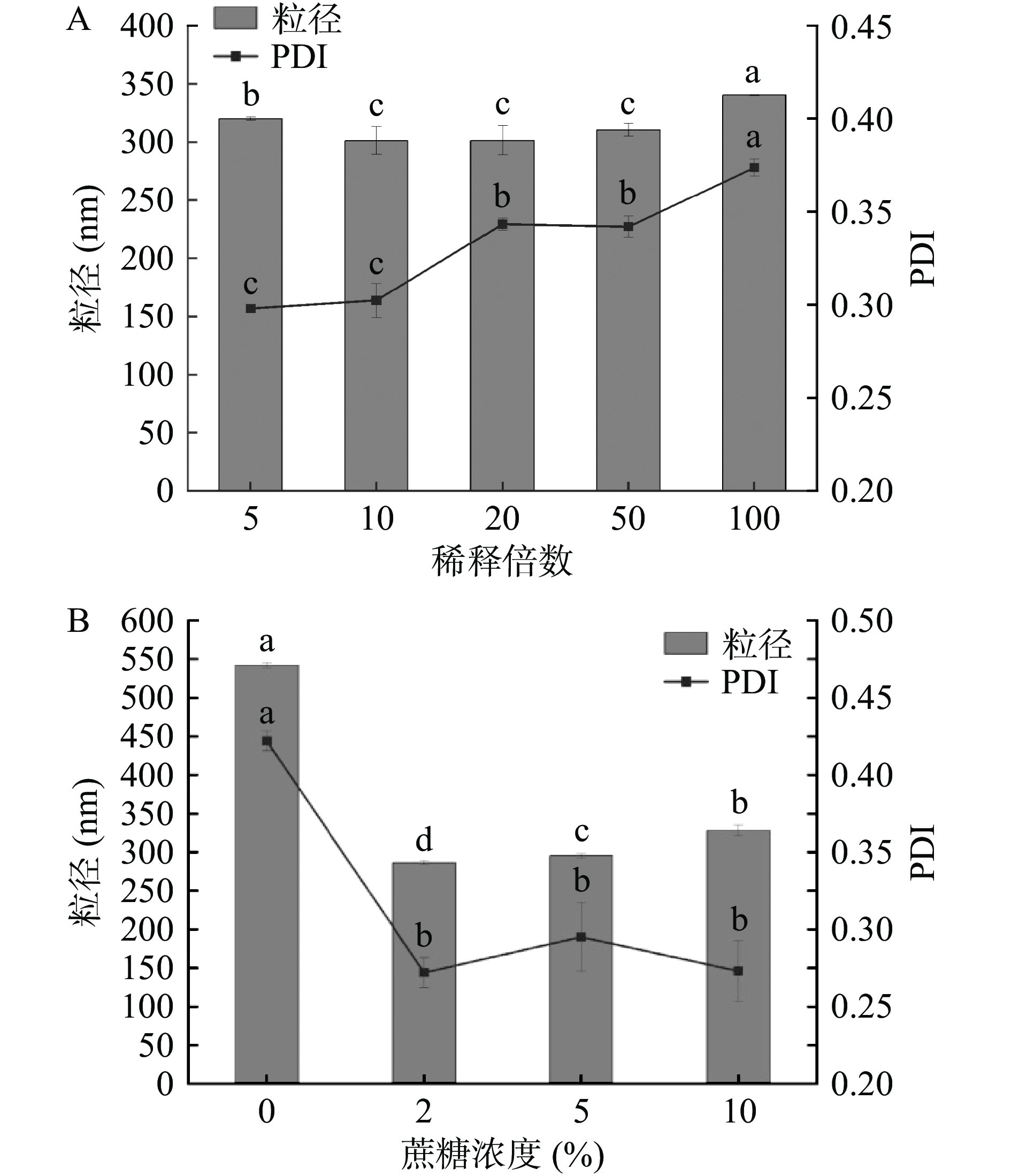 Nanostructured lipid carriers (NLC) for the encapsulation and protection of phytosterol (PS) were prepared using walnut oil as liquid lipid by high-pressure homogenization method. The average particle size, polydispersity index, Zeta potential and encapsulation efficiency were used as the main evaluation indexes to optimize the preparation process parameters and formulations, and the morphology and stability of the optimized PS-NLC were investigated. The optimal ratio for the preparation of PS-NLC was determined by orthogonal tests as 10% of total lipid concentration, 2:3 of stearic acid and walnut oil, and 1.2% of soy lecithin. The prepared PS-NLC had a spherical appearance, small particle size and uniform distribution. The stability results of PS-NLC showed that PS-NLC was stable in storage at 4 ℃ for 28 days. It was diluted 5~100 times with good dilution stability, when used. And the addition of 2% sucrose had the best effect on the lyophilization protection of PS-NLC. Walnut oil was used as the wall material of NLC to provide a suitable lipid delivery system for phytosterols, which could provide technical support for the construction of PS-NLC in food industry.