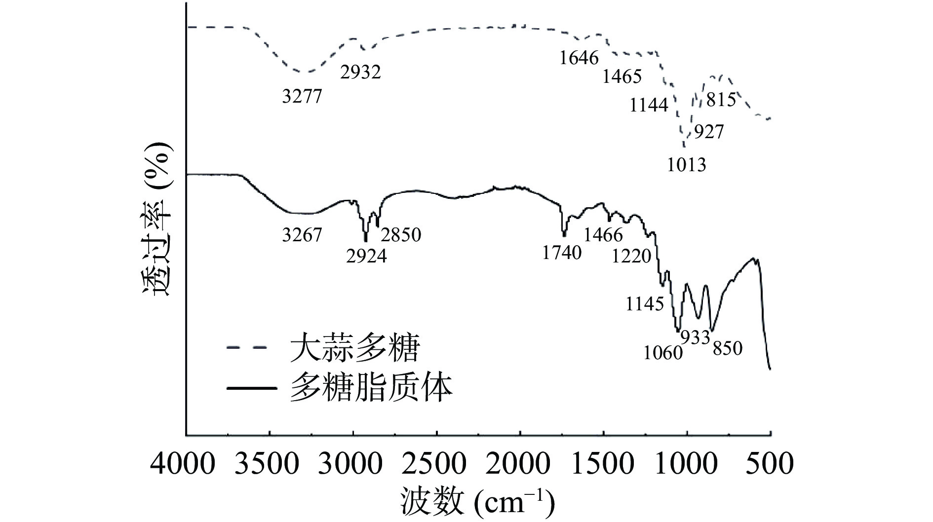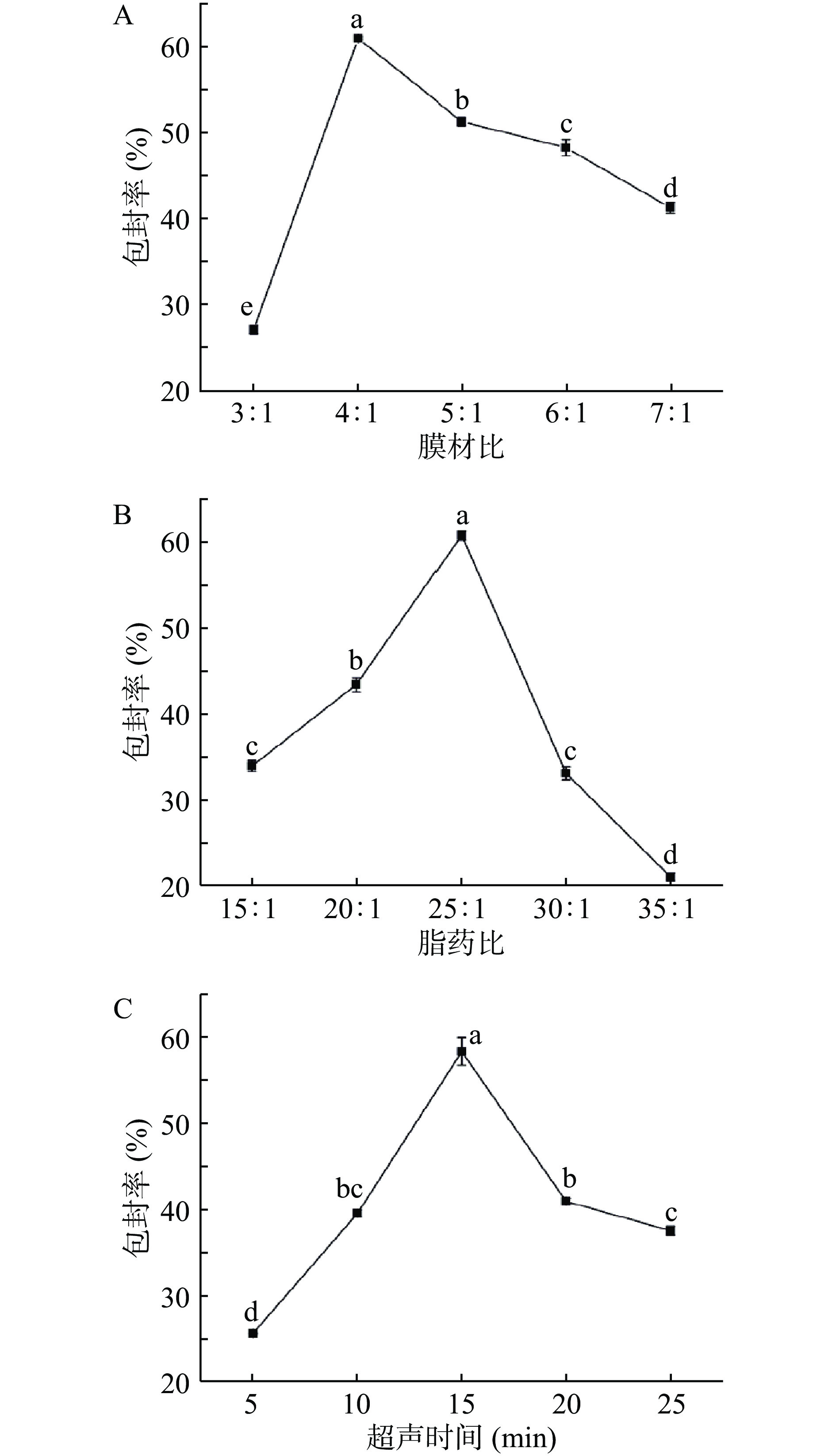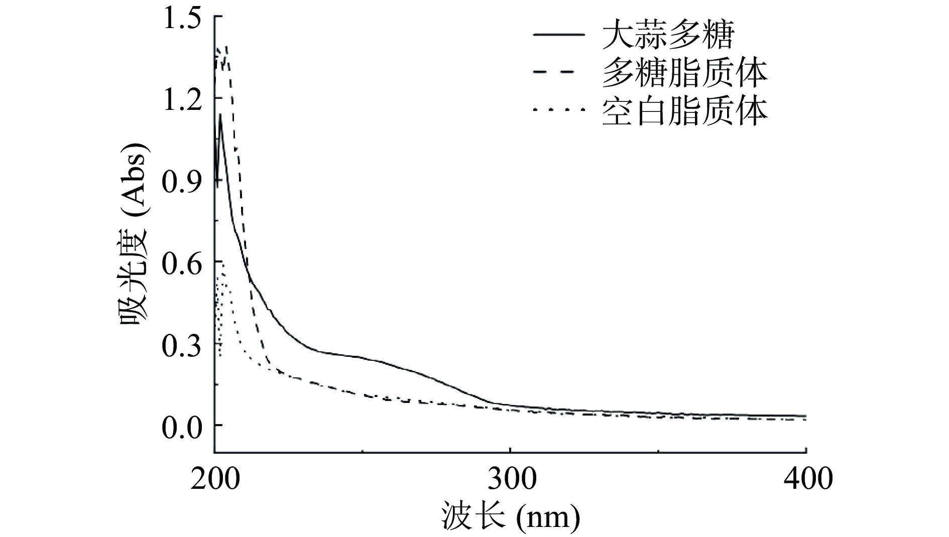 In this study, a novel polysaccharide liposome was prepared using garlic polysaccharides, soybean lecithin and cholesterol and structurally characterized. The optimal preparation conditions of garlic polysaccharide liposomes were determined by single-factor and response surface tests using the film-material ratio, lipid-drug ratio and ultrasonic time as factors and the encapsulation efficiency as response values. The obtained liposomes were characterized in terms of micromorphology, particle size, UV spectrum, IR spectrum and stability. The results showed that the optimal preparation conditions of garlic polysaccharide liposomes were as follows: Film-material ratio of 4:1, lipid-drug ratio of 24:1, ultrasonic time of 14 min, with the maximum encapsulation efficiency of 61.00%±0.73%. The obtained liposomes appeared as spherical vesicles with uniform dispersion and good stability. Their particle size, polymer dispersity index and zeta potential were 213.50±1.85 nm, 0.187±0.005 and −21.07±1.27 mV, respectively. UV and IR spectra confirmed that garlic polysaccharides were successfully encapsulated into the lipid material through electrostatic interactions, without the formation of new chemical bonds. After 28 days of storage at 4 ℃, the particle size of garlic polysaccharide liposomes increased from 211.13±0.54 nm to 225.70±0.65 nm, the PDI increased from 0.187±0.003 to 0.236±0.001, and the encapsulation efficiency decreased from 60.96%±0.32% to 56.97%±0.74%, exhibiting a relative stability. Therefore, the garlic polysaccharide liposomes prepared in this study had high encapsulation efficiency, small particle size, good dispersion and high stability, which could provide a reference for the development of garlic polysaccharide derivatives.