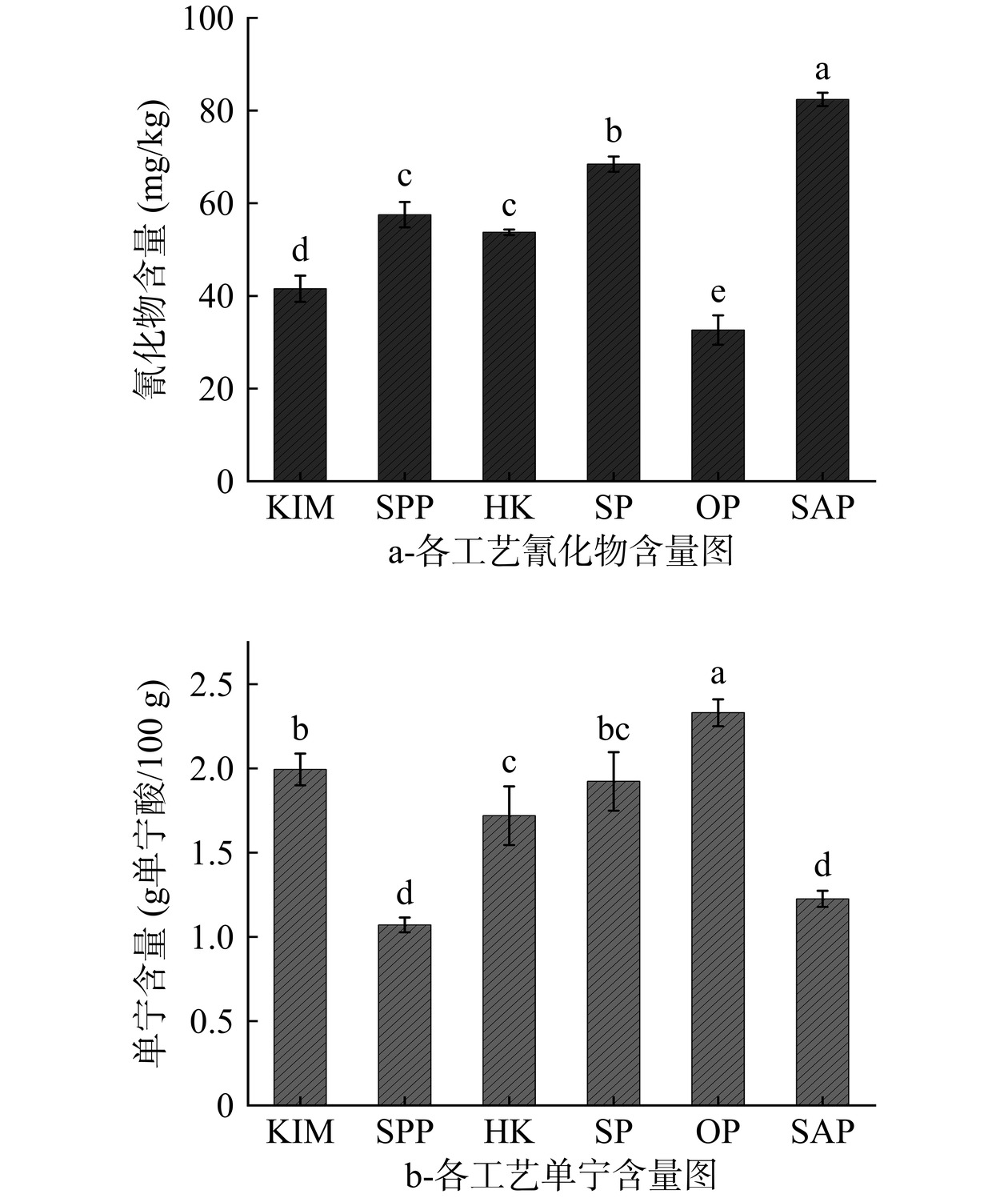 This study explored the differences in the chemical and elemental composition, anti-nutritional factors, and nitrate content of cassava tender shoots (CTS) pickled vegetables under various traditional processes, such as Kimchi (KIM), sprouts pickles (SPP), vegetable pickled in sauce (SP), olives pickles (OP), hot Kimchi (HK) and salted pickles (SAP), using sensory evaluation, the index of nutritional quality (INQ), and principal component analysis (PCA). The aim was to identify the optimal process for producing high-quality CTS pickled vegetables. Results indicated that different pickling processes significantly affect the quality of CTS pickled vegetables. SPP had the highest protein content at 35.29 g/100 g, while SAP had relatively lower chemical composition. The mineral content in the CTS pickled vegetables decreased to varying degrees, with SPP having the most significant decrease (71.91% in Mn content, 70.72% in Zn, 59.20% in K, and 60.84% in Mg). The cyanide content of CTS pickled vegetables ranged from 32.62 mg/kg to 82.41 mg/kg, while tannin content ranged from 1.07 g tannic acid/100 g to 2.33 g tannic acid/100 g, with nitrate content lower than the national standard at 0.37 mg/kg to 1.02 mg/kg. Sensory evaluation showed that KIM had satisfactory freshness, texture, and appearance, ranking the highest among all. INQ evaluation indicated that SAP, KIM, and HK had higher nutritional value. PCA analysis showed that the cumulative contribution rate of the first three principal components was 83.949%, and the overall score showed that KIM, OP and HK had higher quality. After comprehensive evaluation of sensory evaluation, INQ evaluation, and PCA analysis, KIM using the pickle-making process was determined to be the best method, followed by HK and SAP.
