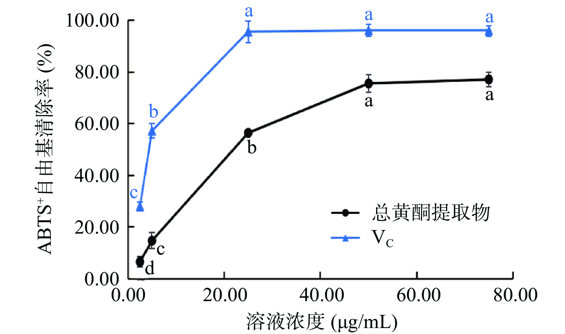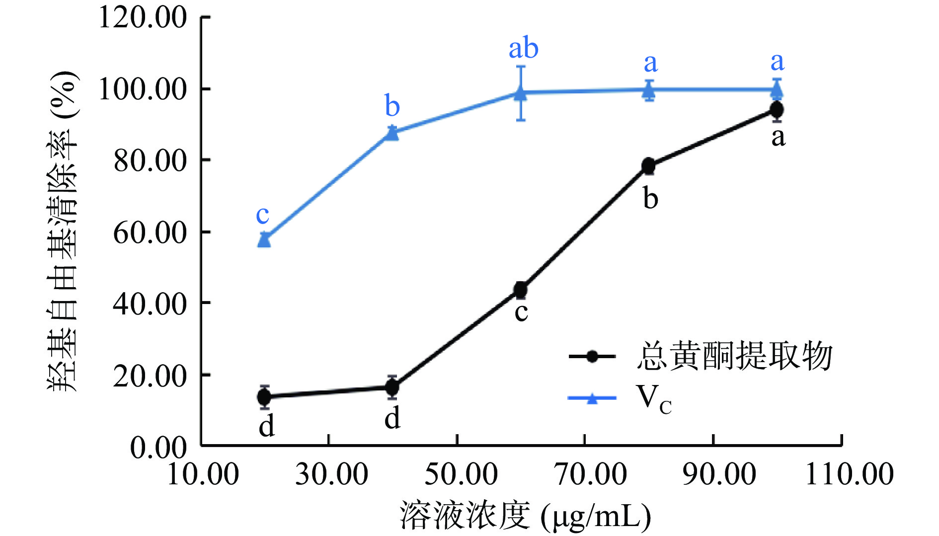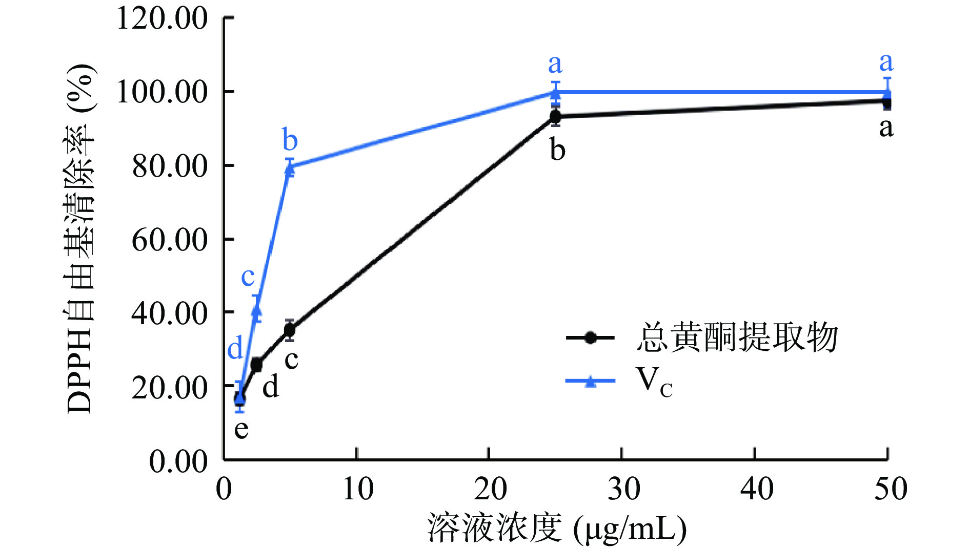 50 value was 6.95 µg/mL. The extraction process of total flavonoids is stable and reliable, which can be used for the extraction of total flavonoids, and the total flavonoids from