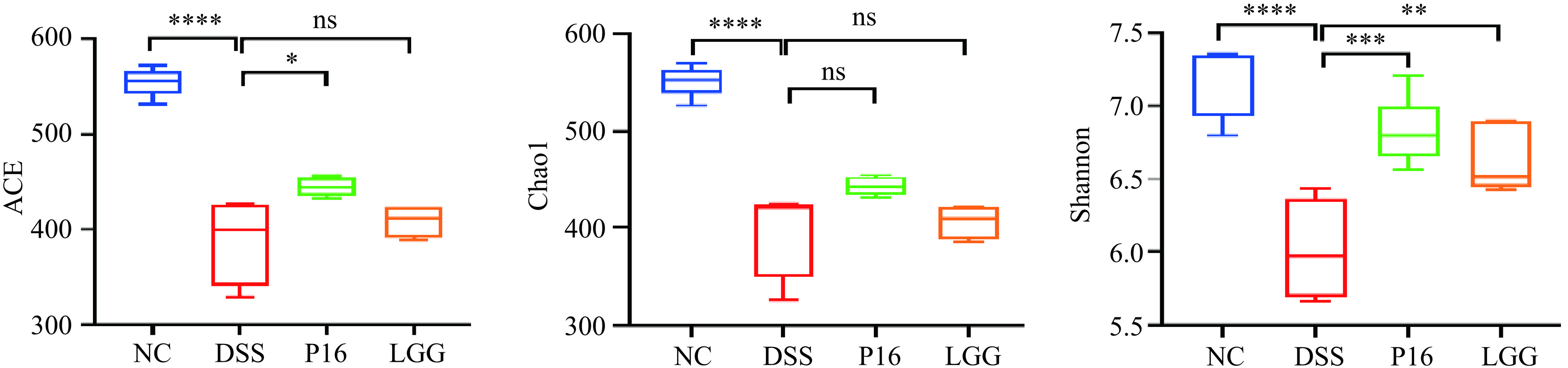 L. plantarum P16 improved the alpha diversity of the intestinal microbial community in mice.