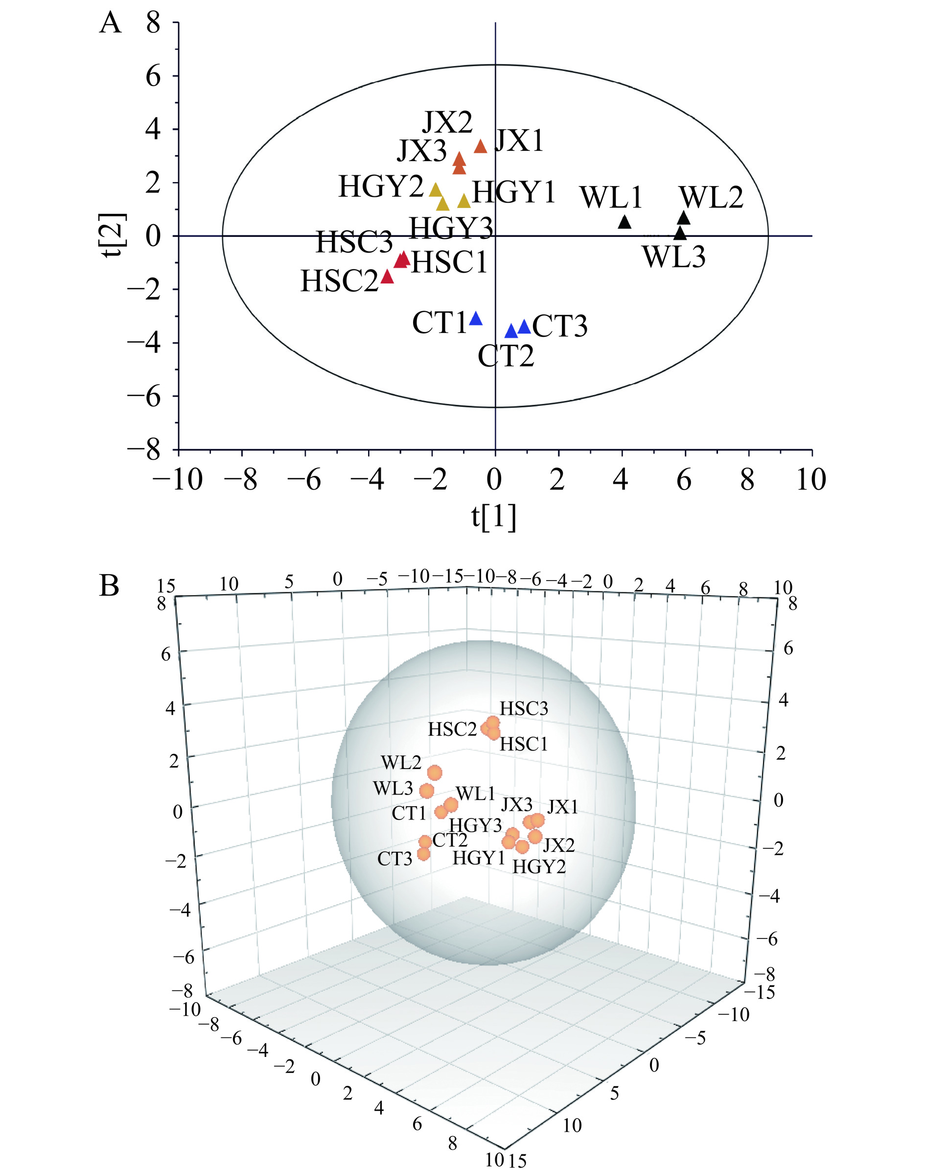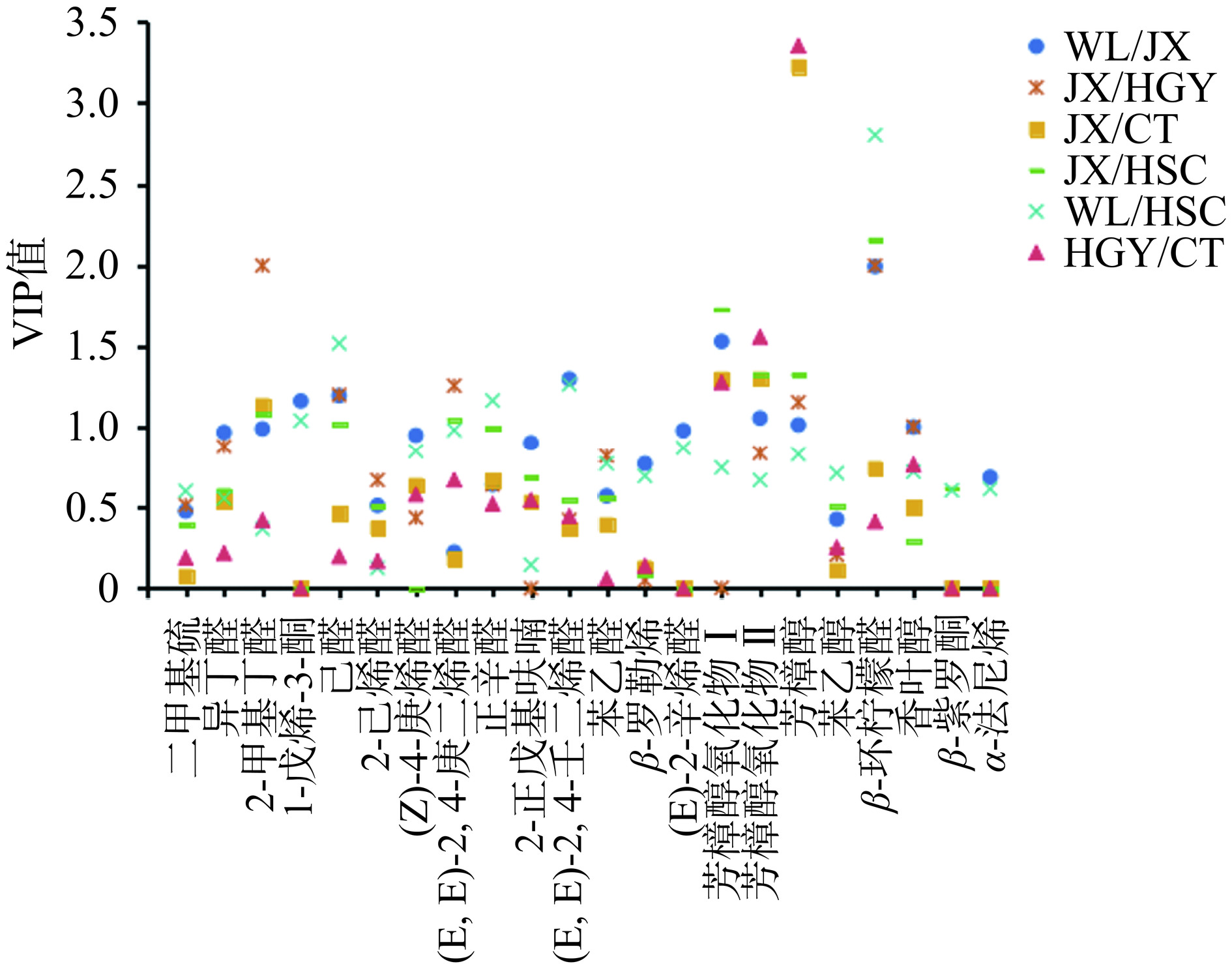 Q2(cum)>0.9) had a high degree of fitting. The main difference components between traditional black tea and flowery black tea were linalool, linalool oxide I, linalool oxide II and 2-methylbutyraldehyde. The main difference components between flowery black tea and oolong tea were