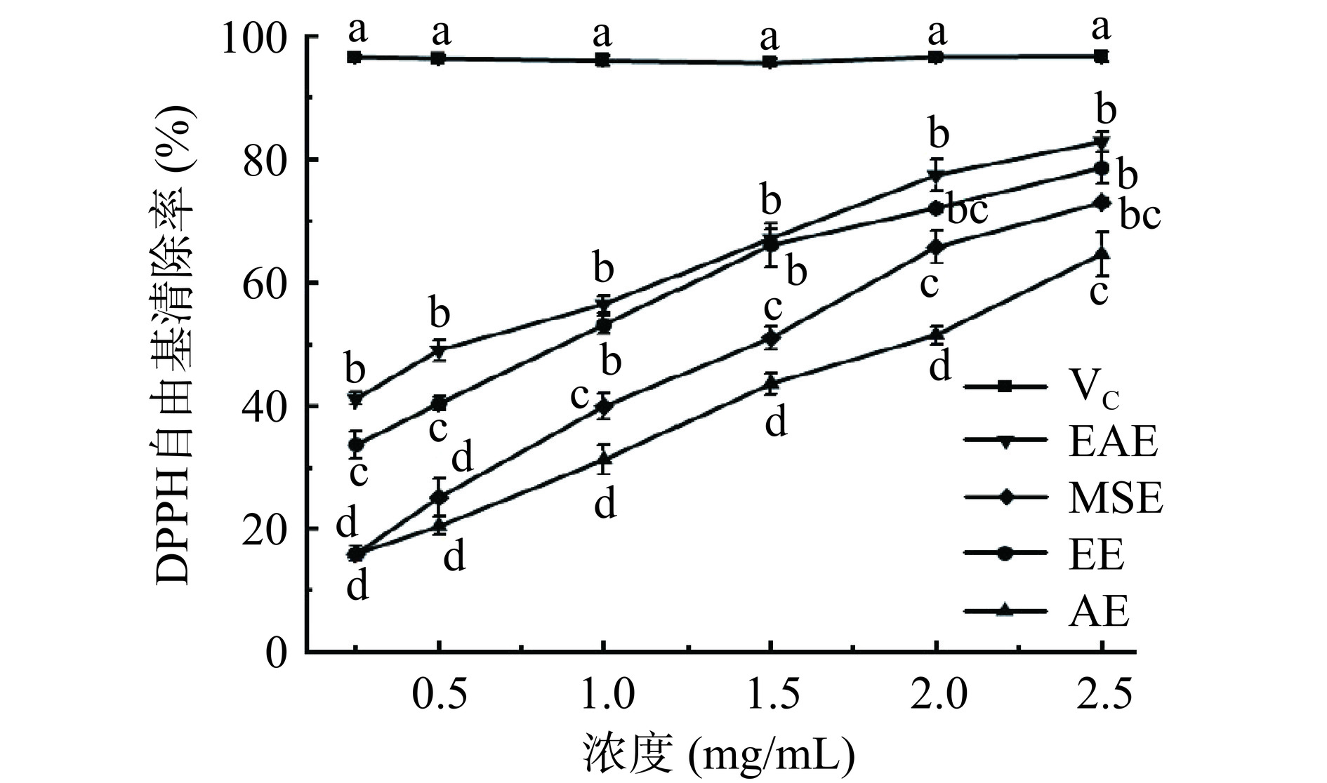 P<0.05). Moreover, the DPPH radical scavenging and