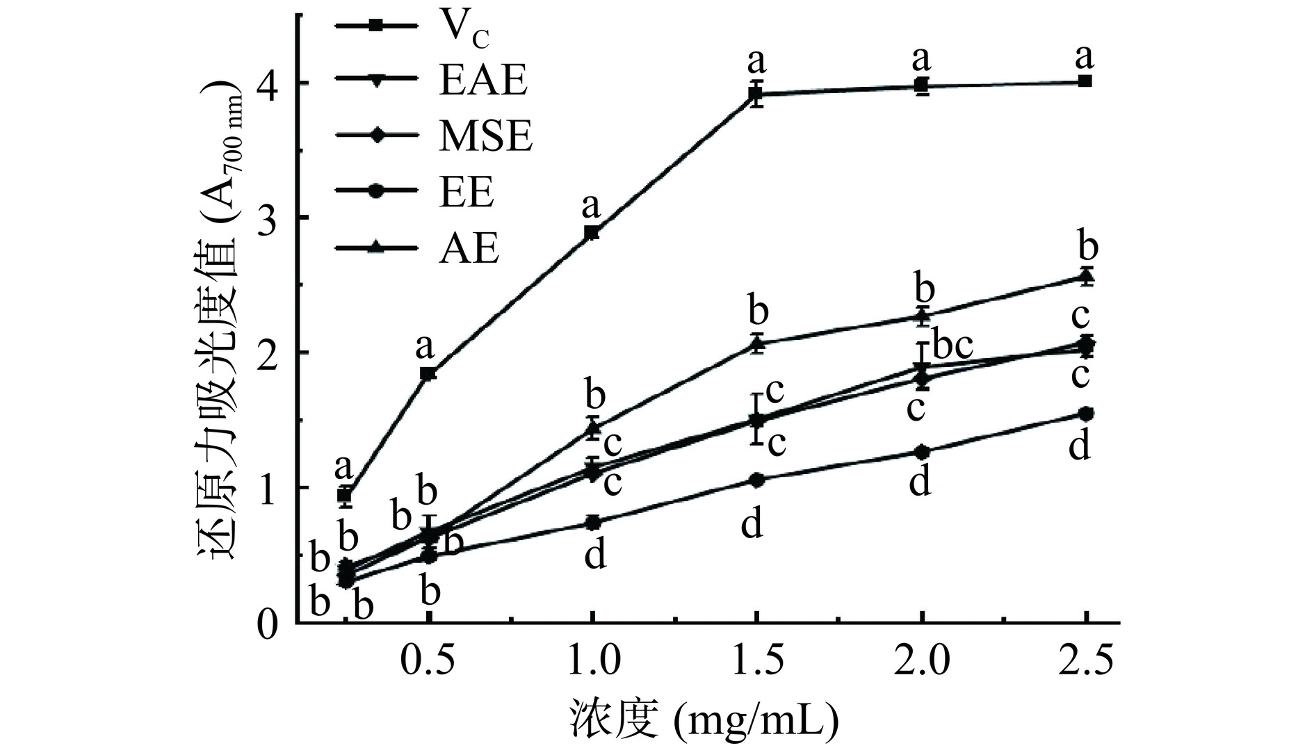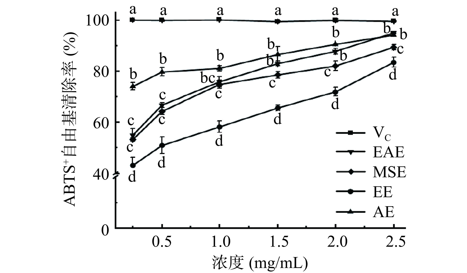 P<0.05). In addition, AE demonstrated better ABTS