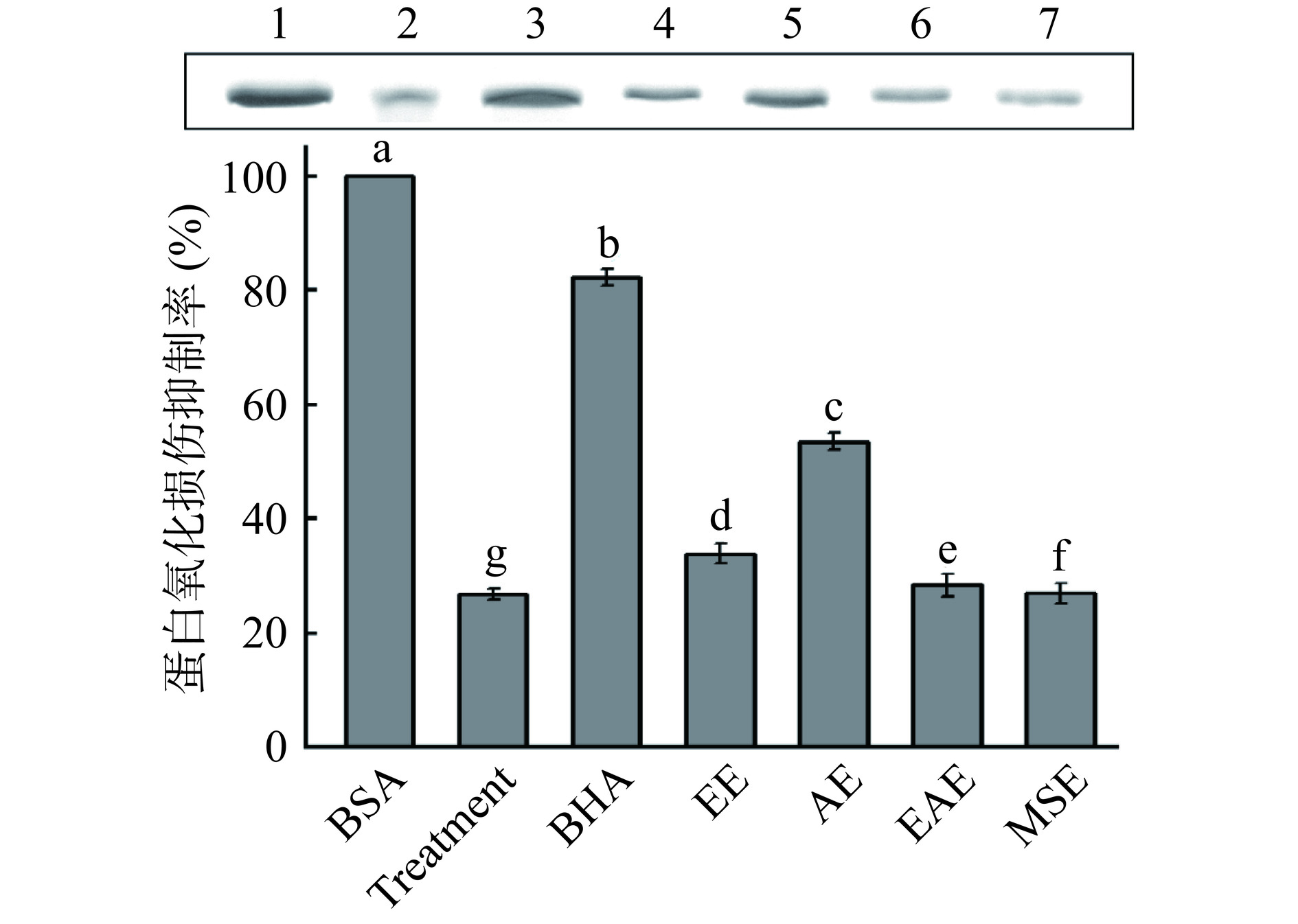 + radical scavenging and lipid peroxidation inhibition capacities than those of EE, EAE, and MSE. Its reducing power and protein oxidative damage inhibition capacities were significantly higher than those of EE, EAE, and MSE (