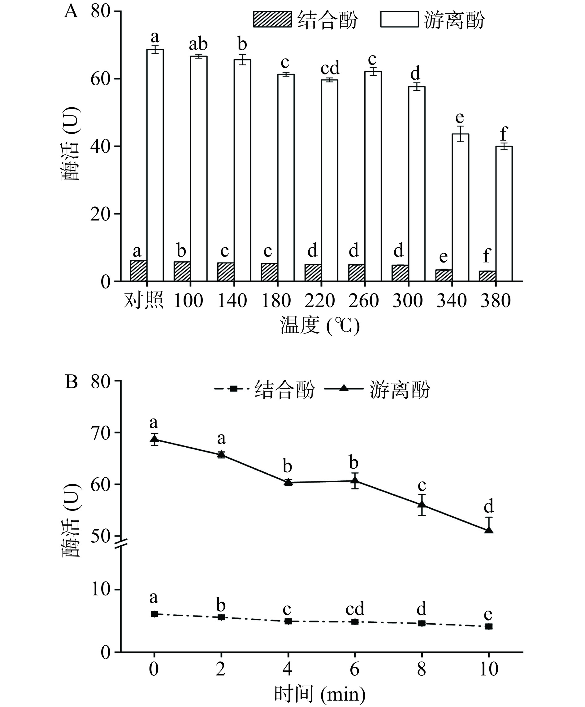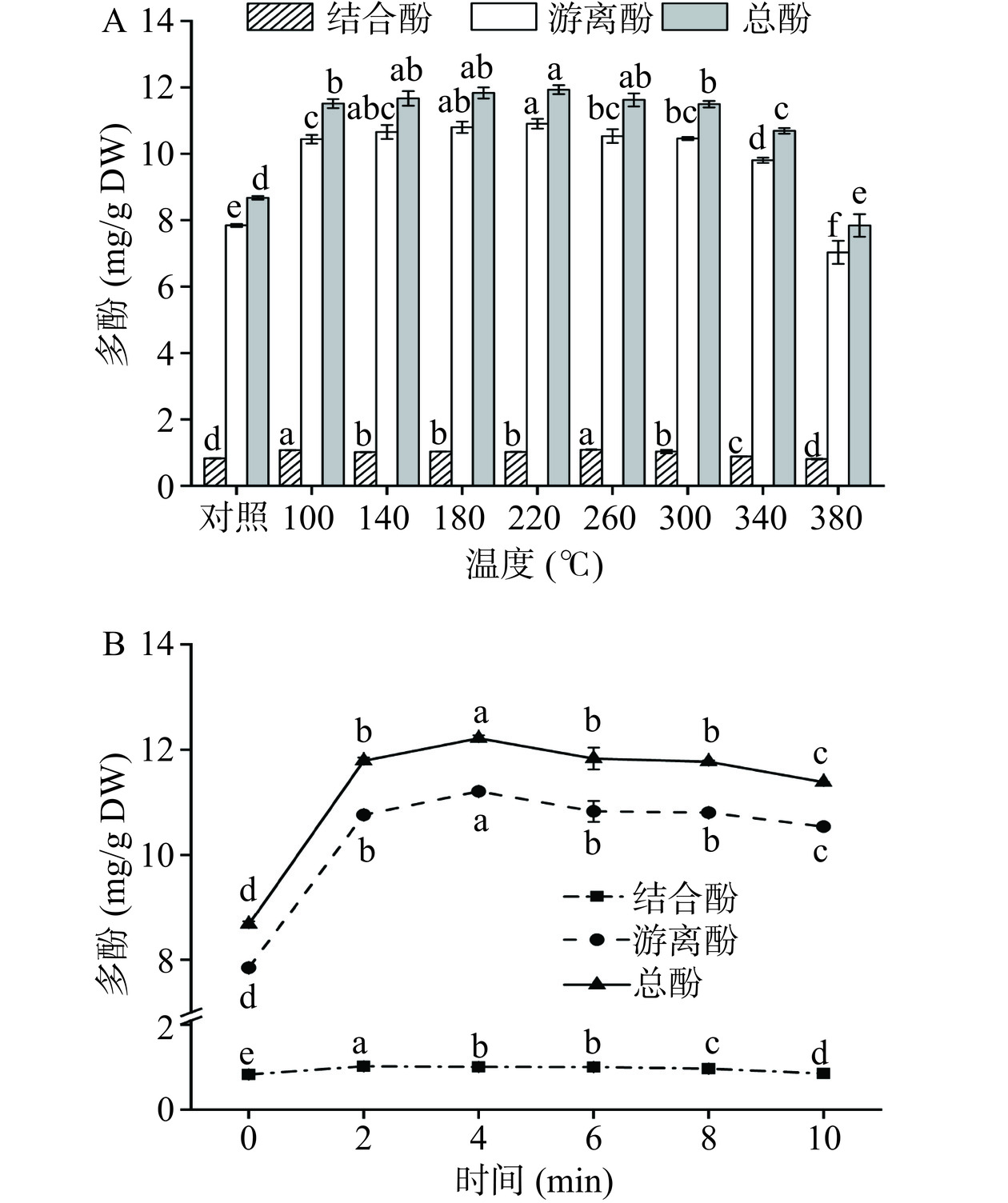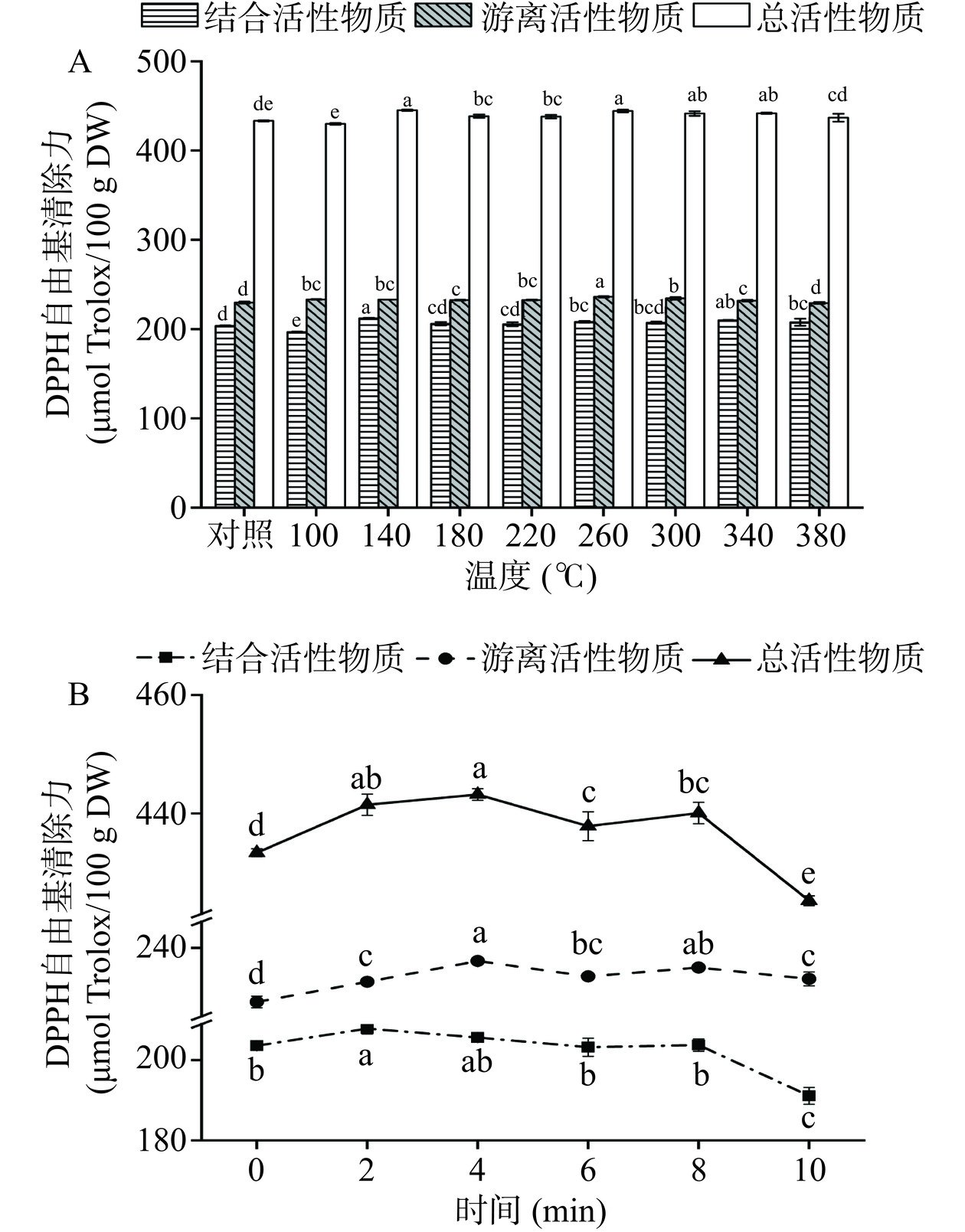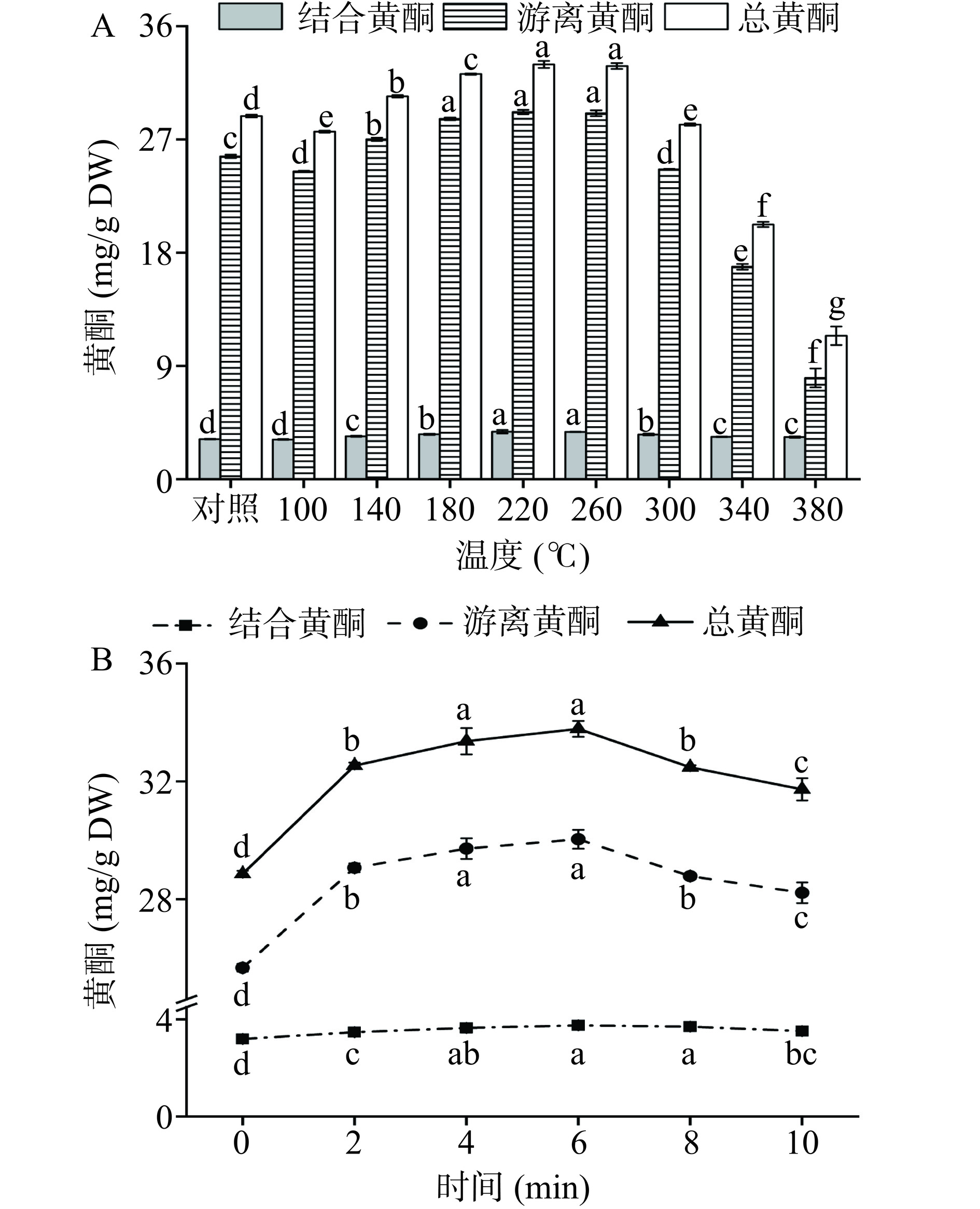 To inhibit the conversion of rutin to quercetin, tartary buckwheat flour was treated with superheated steam and the effects of steam temperature and treatment duration on rutin-degrading enzyme activity, flavonoids, and antioxidant activity were investigated. As treatment temperature increased, phenolic and flavonoid contents first increased and then decreased, phenolic and flavonoid contents were maximal at a steam temperature of 220 ℃, and increased by 37.53% and 14.22%, respectively. Phenolic and flavonoid contents in tartary buckwheat flour fluctuated slightly with changes in treatment duration. When duration of exposure to superheated steam exceeded 6 min, phenolic and flavonoid contents decreased gradually. The change in rutin content was similar to that of flavonoids. When steam temperature was 220 ℃ and treatment duration was 4 min, rutin content was maximal. When steam temperature exceeded 300 ℃ and treatment duration exceeded 6 min, rutin content decreased and quercetin content increased significantly. Rutin-degrading enzyme activity decreased significantly (