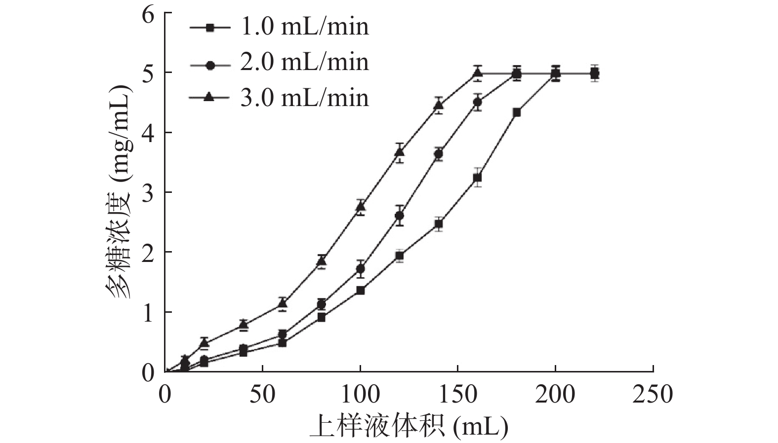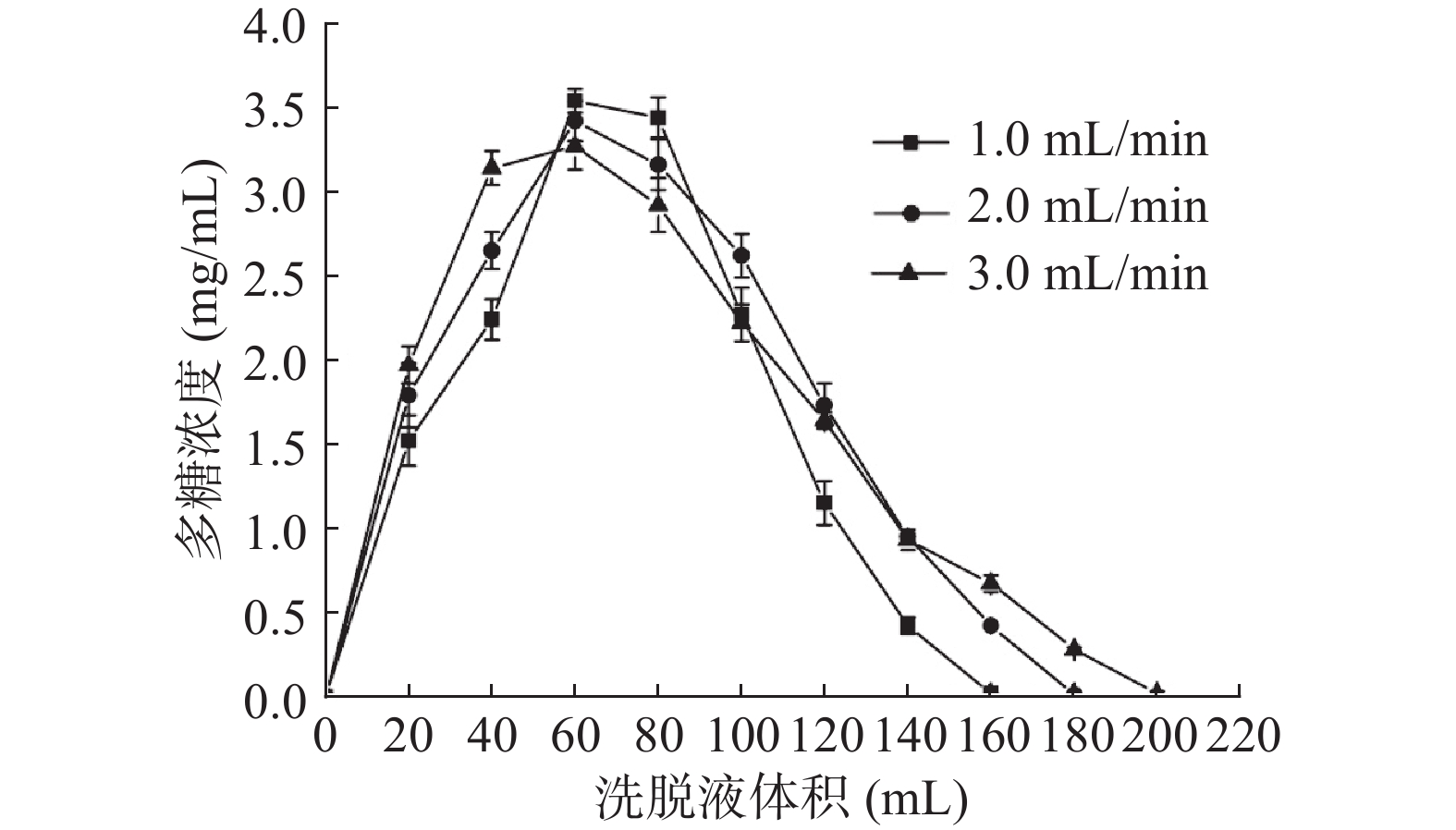 Lophatherum gracile Brongn was optimized, and its effect on athletic endurance was observed. The best type of macroporous resin was selected through performance comparison of static adsorption and elution experiments, then the effects of sample solution pH, sample concentration, loading speed, sample volume, volume fraction of eluent, dosage of eluent and flow rate of elution on the dynamic purification effect were analyzed. Meanwhile, purified product on the influence of athletic endurance of mice was investigated by loading swimming test and related biochemical index detection. The results showed that the optimum purification process parameters were as follows: The initial concentration of sample solution was 5 mg/mL, the sample volume was 60 mL with loading speed of 2.0 mL/min, the pH value of sample solution was 5.0, and the volume fraction of ethanol was 80%, the eluent volume was 160 mL with flow rate of 1.0 mL/min. The purity of polysaccharide in product increased from 16.39% to 57.35%. Compared with the blank control group, the purified product groups at middle and high doses significantly prolonged exhaustive swimming time (