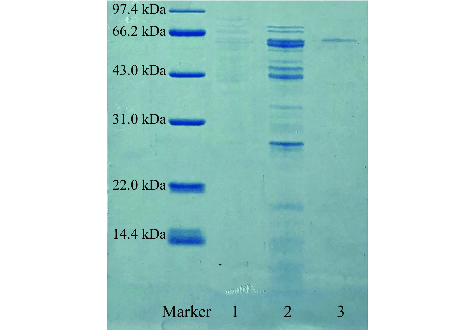 Bacillus thuringiensis Bt028 isolated from sour orange fruit, the chitinase in the strain fermentation broth were purified by centrifugation, ammonium sulfate precipitation, dextran gel G-100 chromatography and SDS-polyacrylamide gel electrophoresis and the optimum temperature, optimum pH and catalytic kinetic parameters of the chitinase were also investigated. The results showed that electrophoretic pure chitinase was obtained by centrifugation, ammonium sulfate precipitation and dextran G-100 gel chromatography from fermentation broth of the strain Bt028, with the specific activity of 681.78 U/mg, the purification factor of 3.21 and enzymatic activity recovery of 15.52%, and the molecular mass of the chitinase was determined to be 65 kDa by SDS-polyacrylamide gel electrophoresis. The enzymatic characteristics study results showed that the optimum reaction temperature of the chitinase was 60 ℃ with good stability when temperature lower than 60 ℃; and the optimum reaction pH was 6.5 with good stability at pH5.5~7.5. Mg