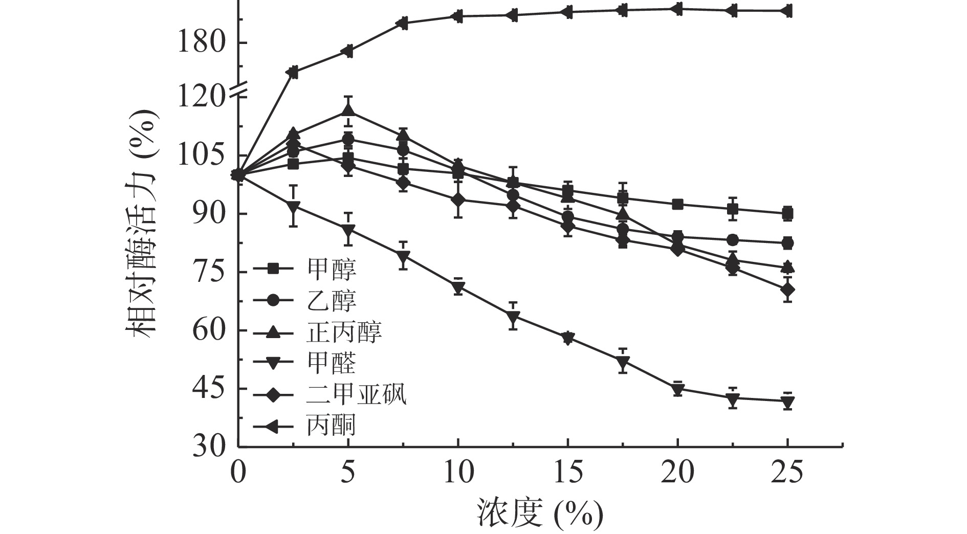 3+ had a certain promotion effect. Low concentrations of methanol, ethanol, n-propanol and dimethyl sulfoxide increased the enzymatic activity, however, the chitinase would be inhibited when the concentration of these organic solvents were increased to a certain level. The chitinase could be activated by acetone but inhibited by formaldehyde. Under the optimal catalytic conditions, the value of Km, Vmax and Kcat of the chitinase-catalyzed reaction were 29.533 mg/mL, 108.696 μmoL/(L·min) and 0.527/min, respectively. Research results provide technical parameters for the practical application of the chitinase.