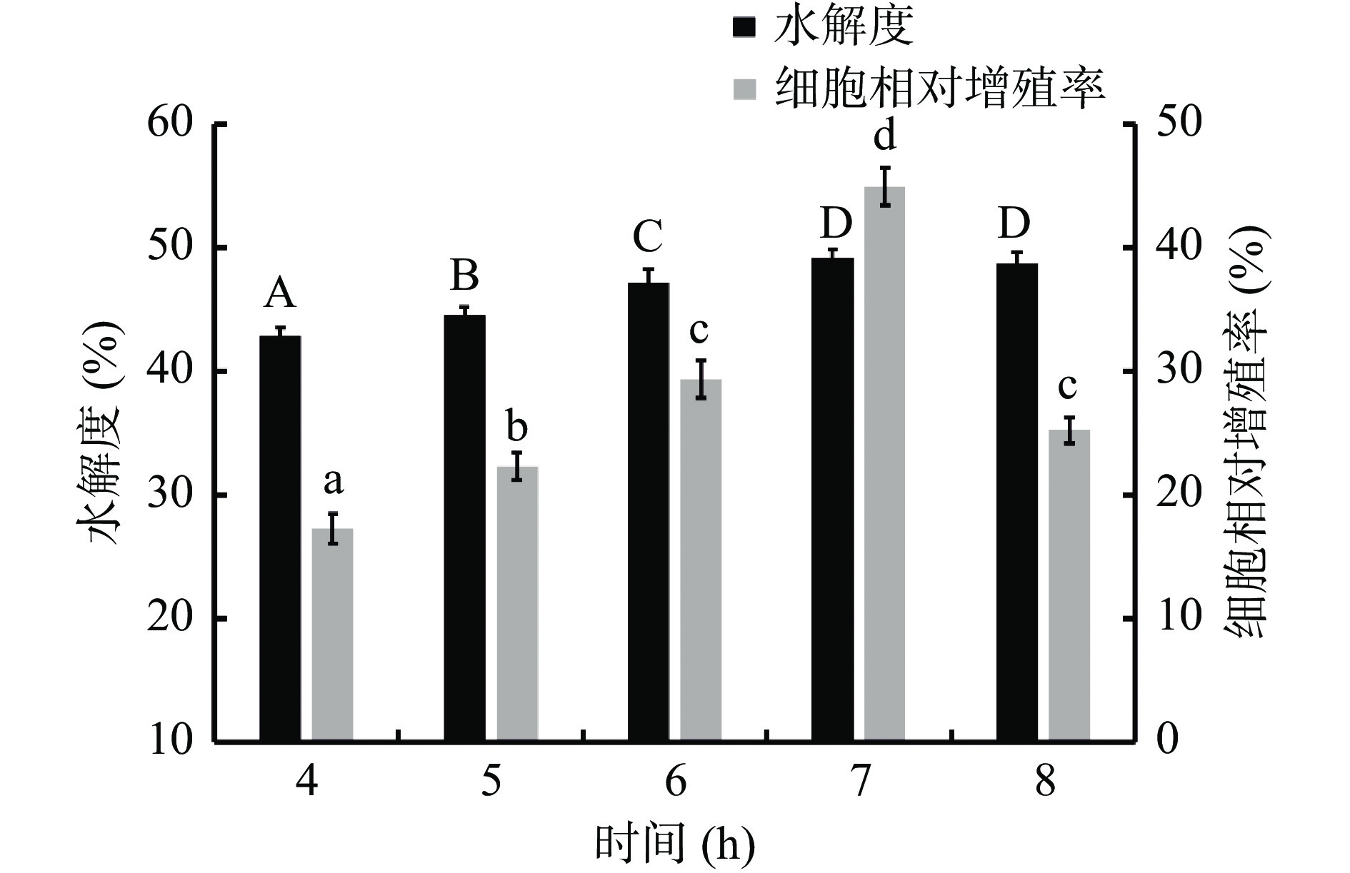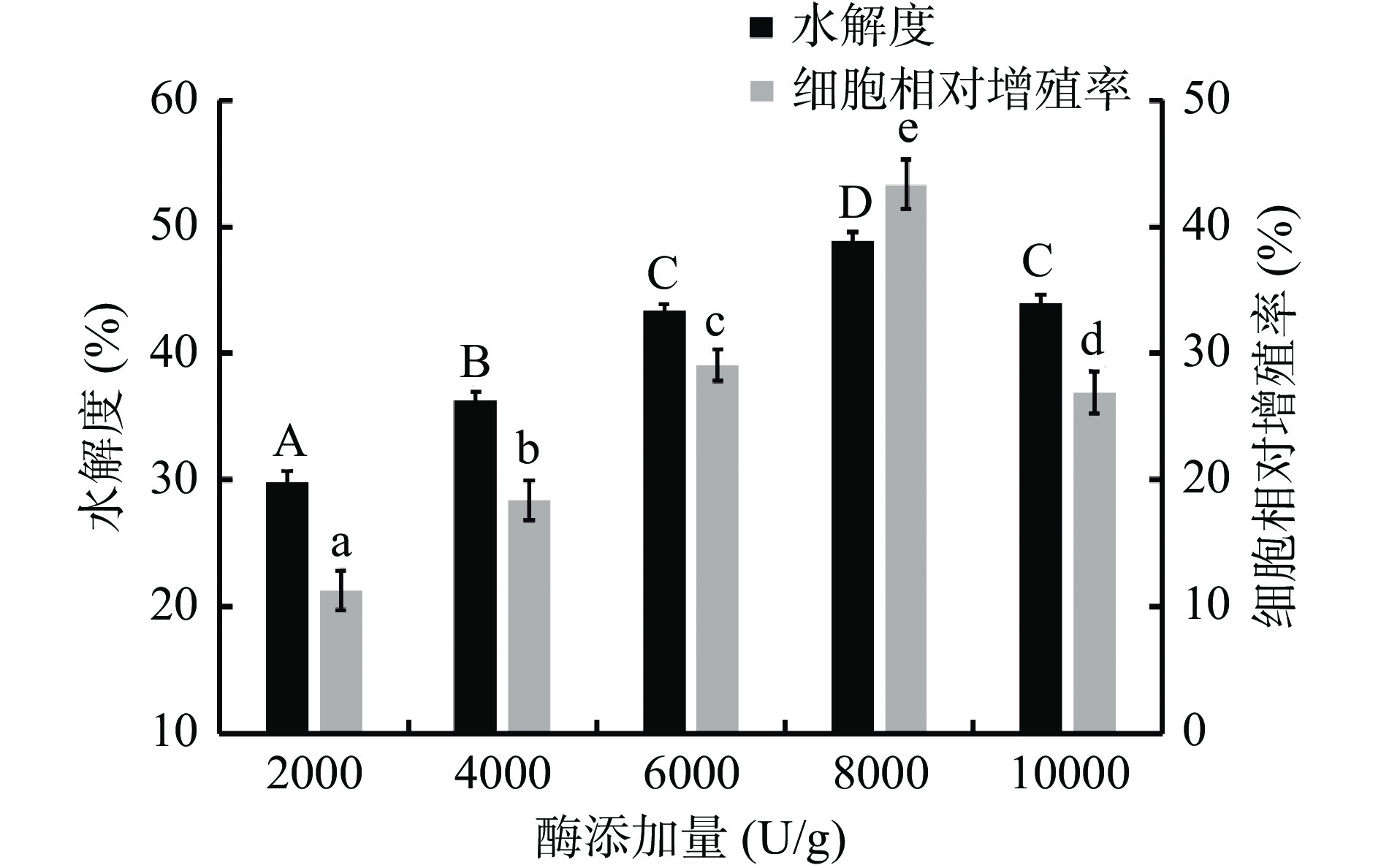 In order to optimize the enzymatic extraction process of chub mackerel immune active peptide, taking the proliferation rate and degree of hydrolysis of mouse spleen lymphocytes as indicators, on the basis of single factor tests, the enzyme addition amount, enzymatic hydrolysis time and enzymatic hydrolysis temperature were selected as the investigation factors, and the Box-Behnken method was used for three factors and three levels response surface test design to determine the best enzymatic preparation process of chub mackerel immune active peptide. The amino acid composition of the obtained immune active peptide of chub mackerel was analyzed. The results showed that neutral protease was the best protease, and the best enzymatic hydrolysis conditions were enzyme addition 8800 U/g, time 7 h and temperature 52 ℃. The verification experiment found that the relative proliferation rate of mouse spleen lymphocytes obtained under these conditions was 48.11%±2.67%, which was close to the predicted value of regression equation. At the same time, chub mackerel immune active peptide was rich in amino acids, including 45.52% essential amino acids and 32.00% hydrophobic amino acids. The results would provide a theoretical basis for enzymatic preparation of immune active peptide for chub mackerel, and a reference for further realization of high value utilization of chub mackerel resources.