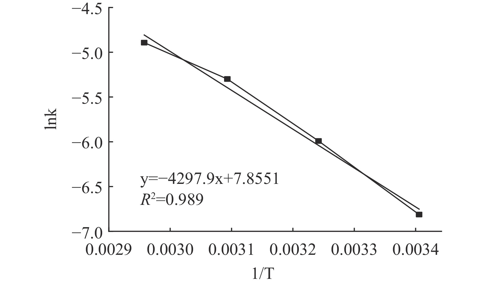 −35583.09/RT. The model predicted that the fennel essential oil microemulsion could store 1899.18, 932.03, 492.94 and 271.51 h at 20, 35, 50 and 65 ℃, the maximum relative error was 8.73%, and the error was small, which could accurately predict the shelf life of the microemulsion.