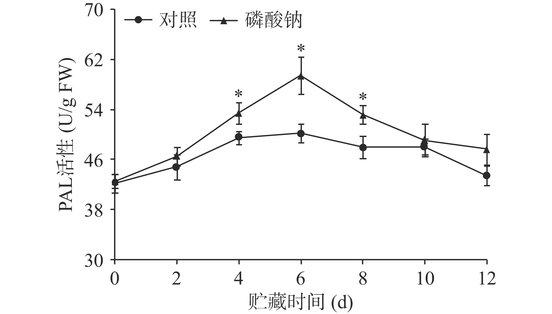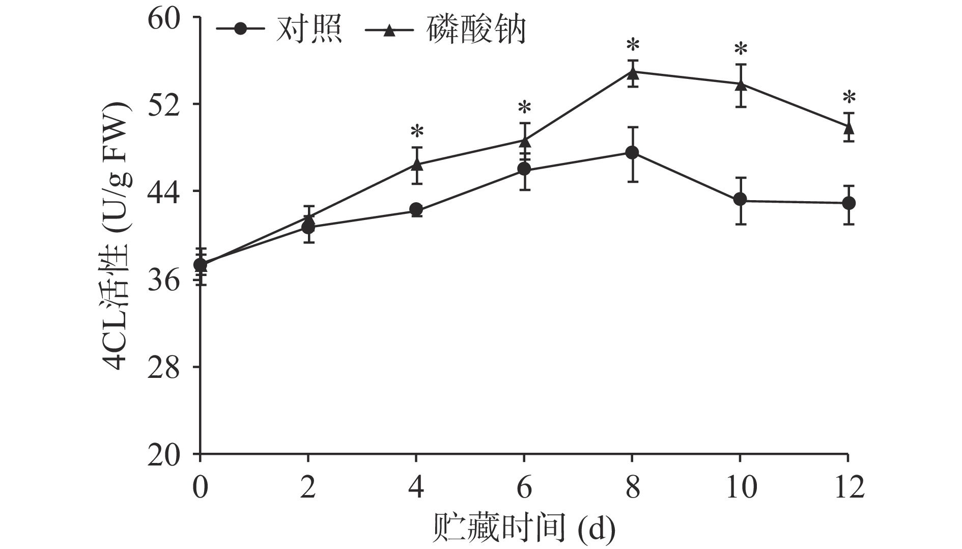 P<0.05). Moreover, trisodium phosphate treatment increased the activities of phenylalanine ammonilyase, 4-coumarate/coenzyme A ligase and peroxidase in the middle and late storage period. A ligase and peroxidase activities in jujube fruit and peaked at 6, 8 and 8 d, respectively, which was 1.18, 1.16 and 1.40 times of those in control (