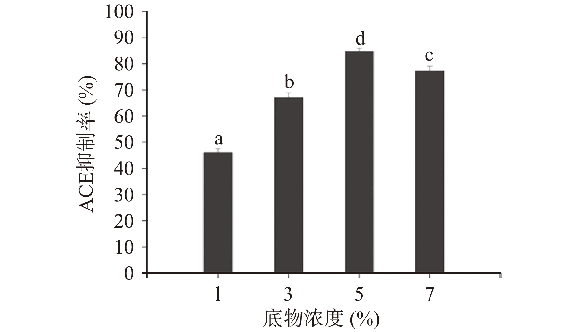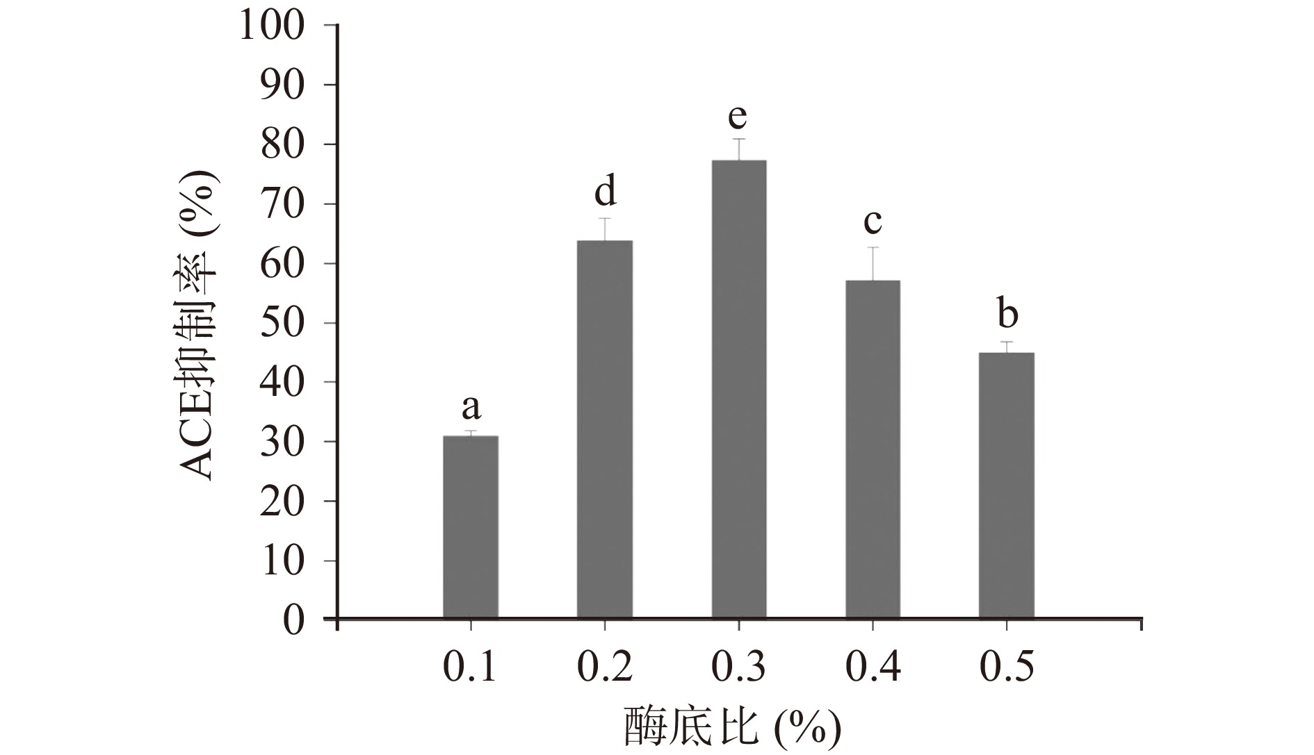 Moringa oleifera leaves was optimized by single factor experiments and response surface method. The ACE inhibitory activity, amino acid composition and selenium content of the optimal enzymatic hydrolysate were analyzed and characterized. The results showed that the optimal hydrolysis conditions of ACE inhibitory peptides were as follows: time 3 h, pH7.5, enzyme to substrate ratio 0.23%, substrate concentration 5.97% and temperature 39.2 ℃. The ACE inhibitory peptides prepared under these conditions showed strong ACE inhibitory activity (IC