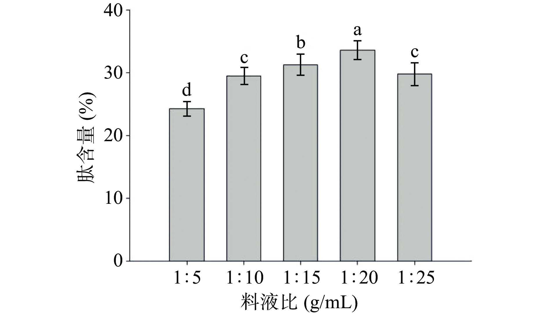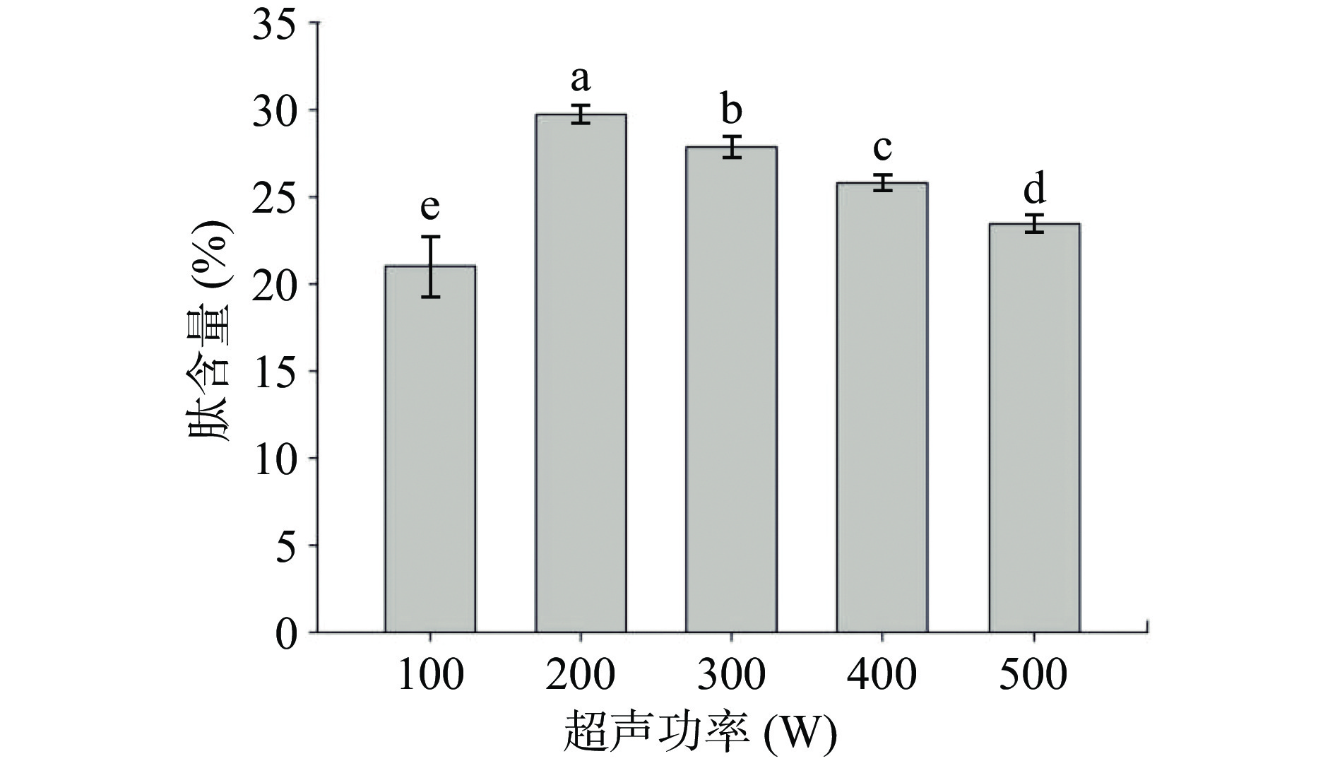In order to determine the effect of ultrasonic extraction on the content and functional activity of collagen peptide from Tibetan sheep skin, solid-liquid ratio, ultrasonic power and ultrasonic time were studied by response surface method to determine the best ultrasonic extraction process of collagen peptide. The antioxidant capacity, reduction power and ·OH scavenging ability of collagen peptide from Tibetan sheep skin was analyzed. The results showed that ultrasound-assisted treatment had significantly affected the content of collagen peptide and antioxidant activity. The optimal ultrasonic extraction conditions were solid-liquid ratio 1:18, ultrasonic power 220 W and ultrasonic time 27 min. The collagen peptide content of Tibetan sheep skin was 30.21%±1.67%. The reduction power and ·OH scavenging rate of collagen peptide after ultrasonic assisted extraction were 0.49 and 83.2%, which were increased by 4% and 38.3% compared with those before ultrasonic extraction, respectively. After gastrointestinal digestion, the reduction power and ·OH decreased to a certain extent, but still had good antioxidant activity. Ultrasound-assisted extraction of collagen peptide from Tibetan sheep skin has the advantages of increasing the content of collagen peptide and enhancing antioxidant activity