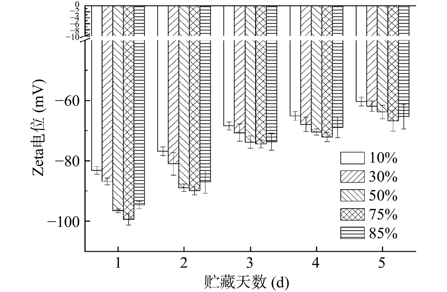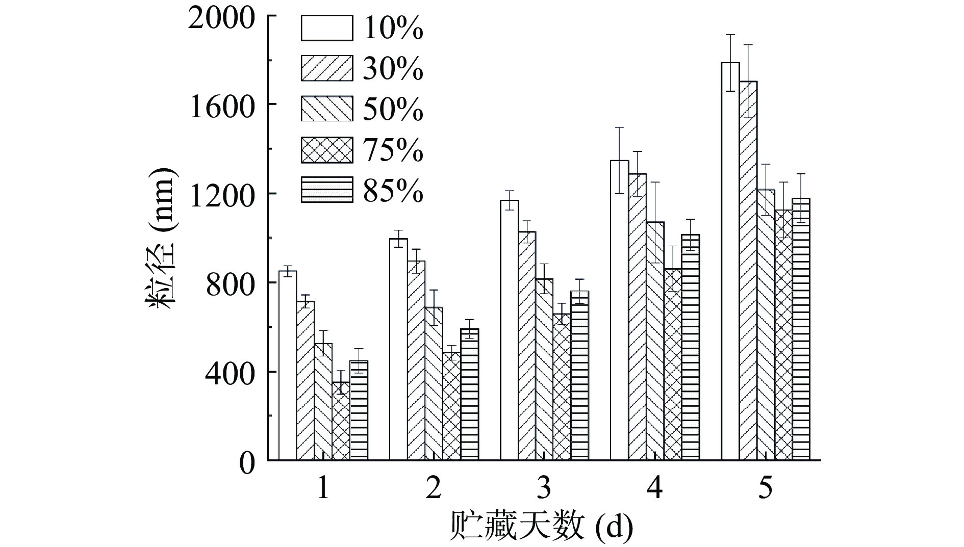 β-fold contents of SPI were the highest. In addition, the storage experiments at normal temperature showed that the particle size of Pickering emulsion with different volume of inner phase showed an overall increasing trend, and the absolute value of zeta potential, EAI and ESI showed an overall decreasing trend with the storage time extending. The