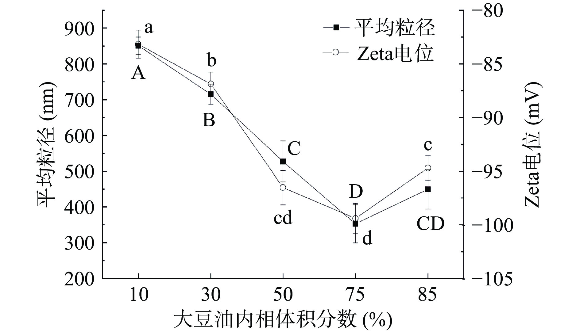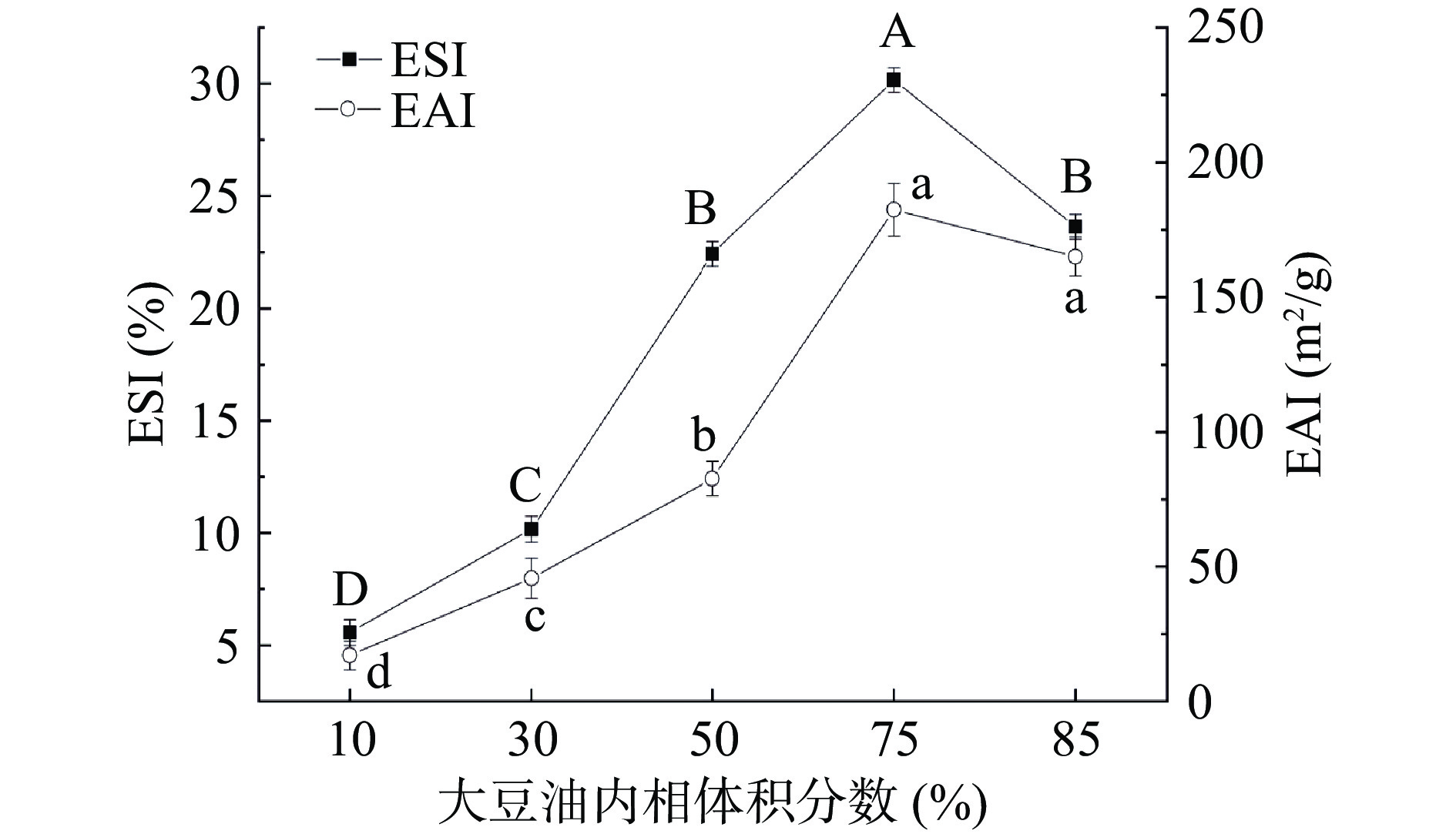 β-folding increased, and random crimp content did not change significantly. High inner phase emulsions with 75% and 85% inner phase volume showed better stability than those with 10%~50% inner phase volume. In conclusion, this study explored the preparation and characterization of Pickering emulsion of SPI-carrageenan-xanthan terpolymer, aimed to provide technical reference for targeted delivery of functional substances and application innovation of fat substitutes.