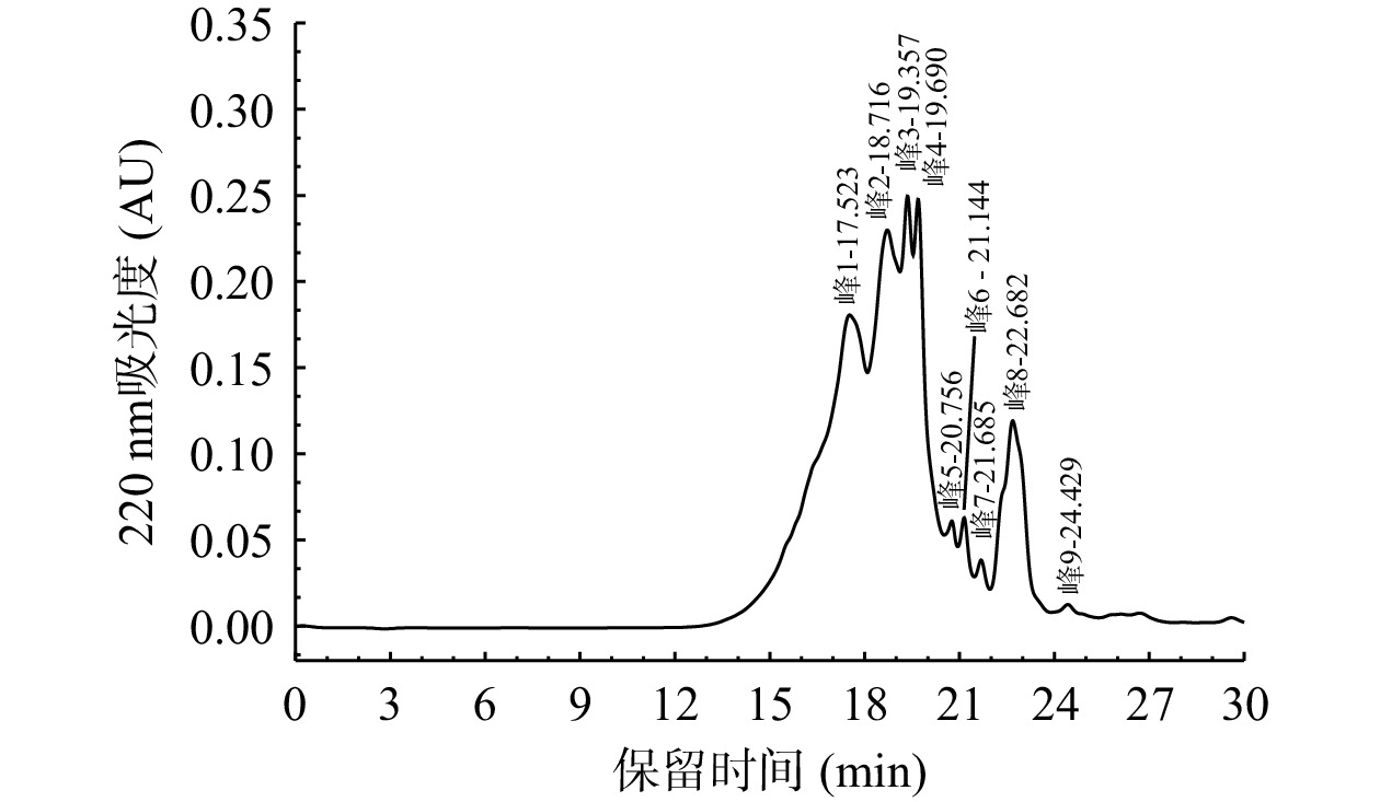 A. japonicusr ovum was 80.65%±0.52% under these conditions, which was close to the predicted value. The molecular weight of proteolytic products was concentrated under 3000 Da, accounting for 98.37% of the total content, of which 1000~3000 Da accounted for 9.50%, and less than 1000 Da accounted for 88.87%. The ACE inhibitory activity of oligopeptide components (IC