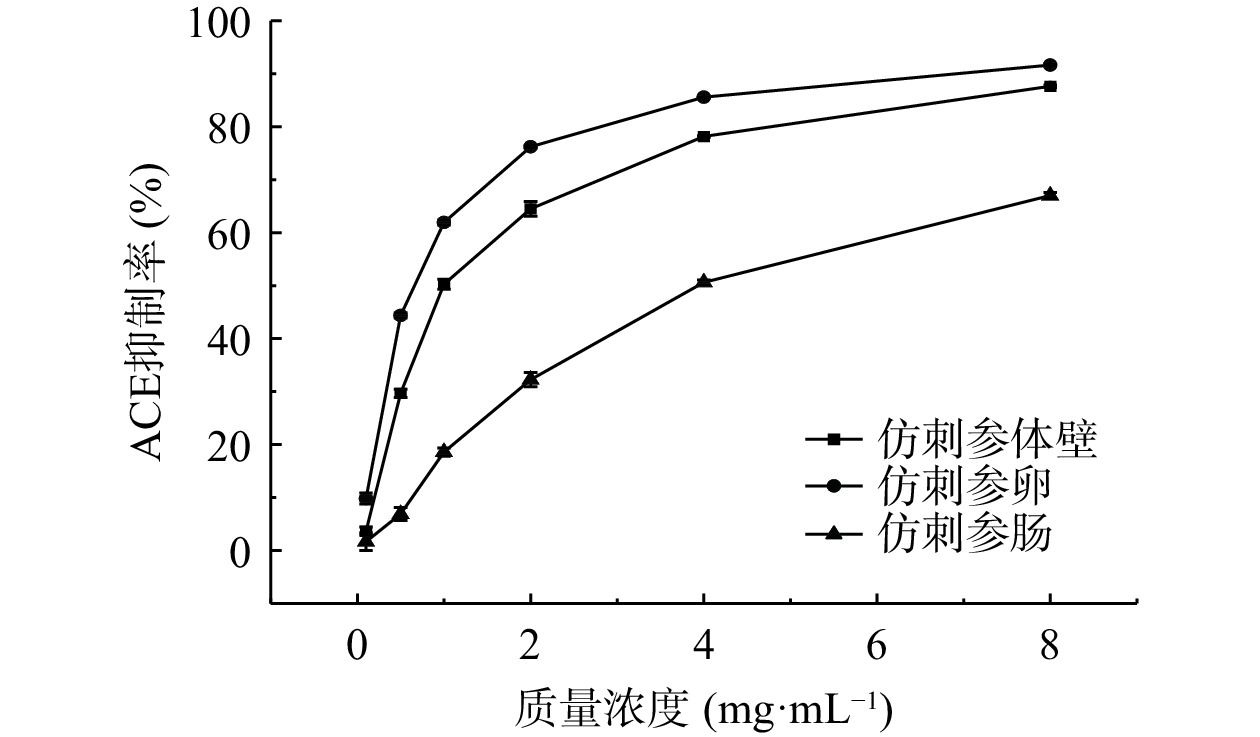 50 values of ACE inhibition of each protease lysate from body wall, intestine and ovum were 1.11, 4.02, 0.65 mg/mL, respectively, so that