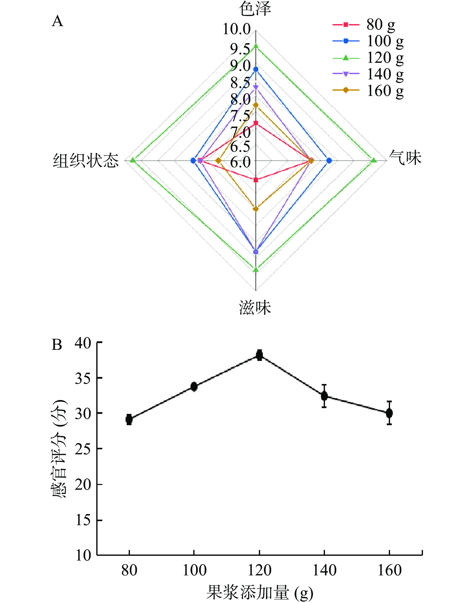 Malus prunifolia pulp, 5.0% of the honey pomelo peel pectin, 17.3% of the white sugar, and the concentration time was 17 min. The results of sensory indexes showed that the