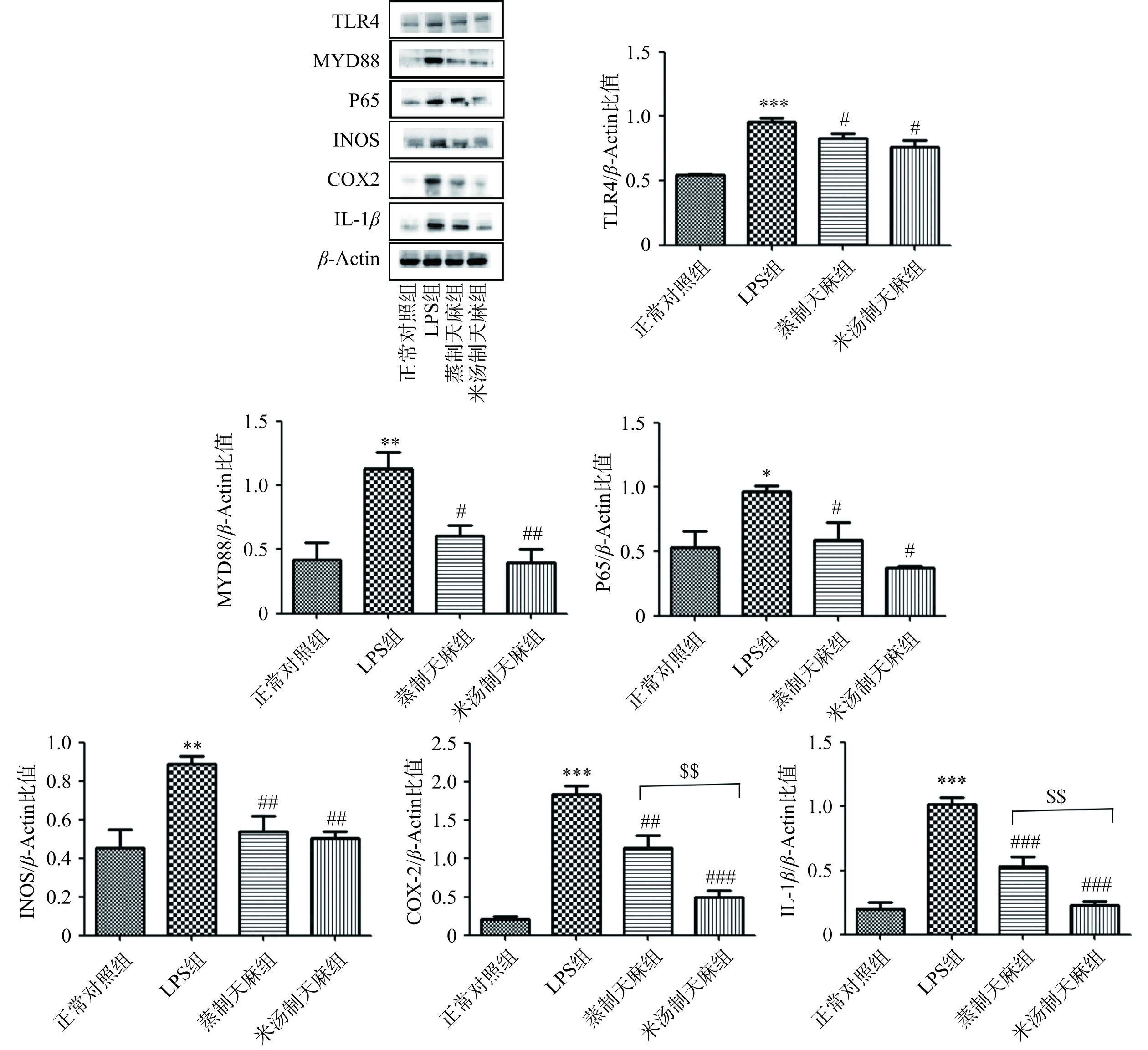 β in the cell culture medium were measured with ELISA kits. The protein expressions of TLR4, MYD88, P65, INOS, COX-2, IL-1