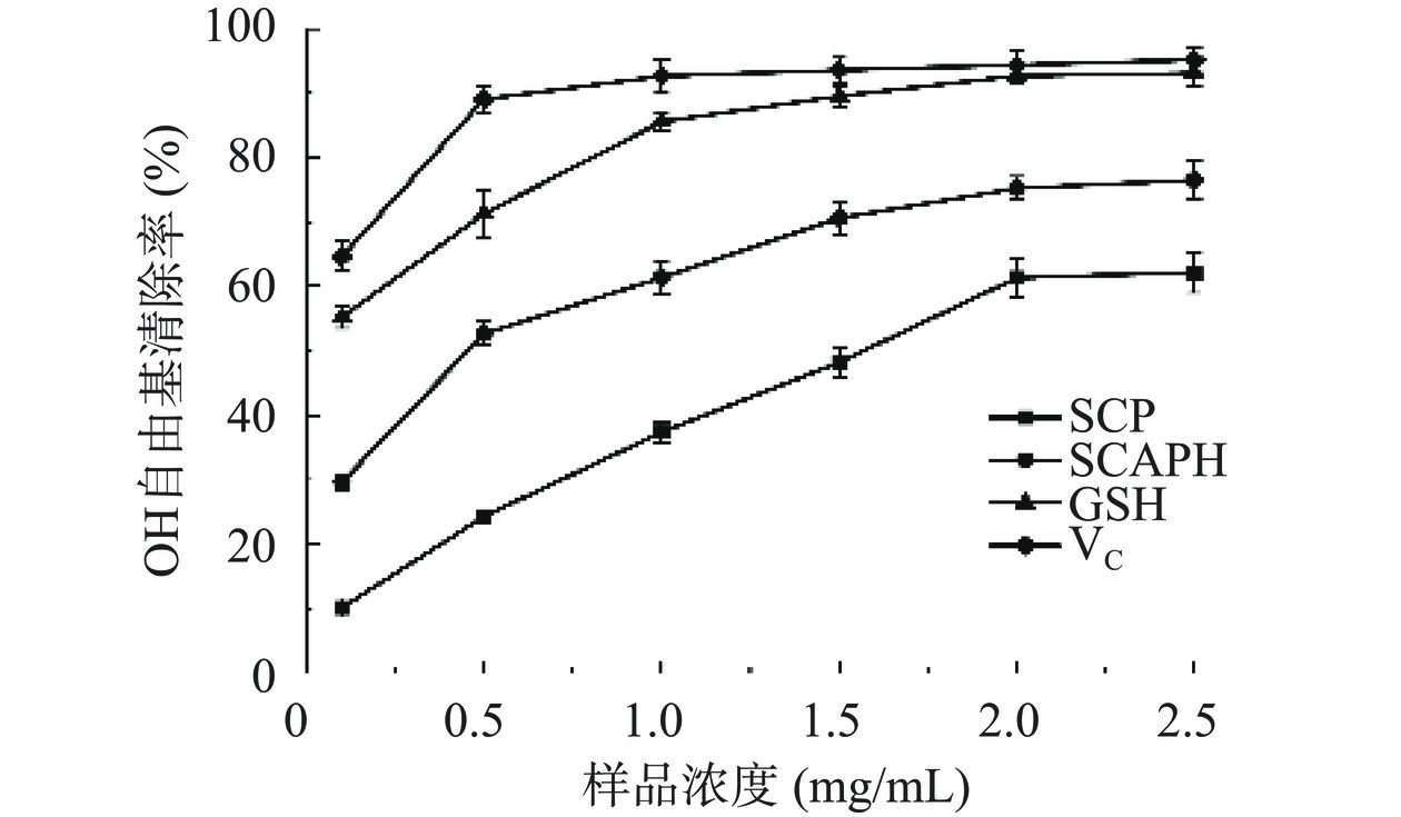 Schisandra chinensis protein peptides was alkaline protease. The optimum enzymatic hydrolysis parameters were as follows: substrate concentration 5%, enzyme-to-substrate ratio 1%, enzymatic hydrolysis time 3 h, enzymatic hydrolysis temperature 55 ℃, pH9.0. Under these conditions, the polypeptide content was 88.61%, the degree of hydrolysis was 24.21%, and the DPPH· scavenging rate was 86.96%. The free radical scavenging ability and reducing ability of