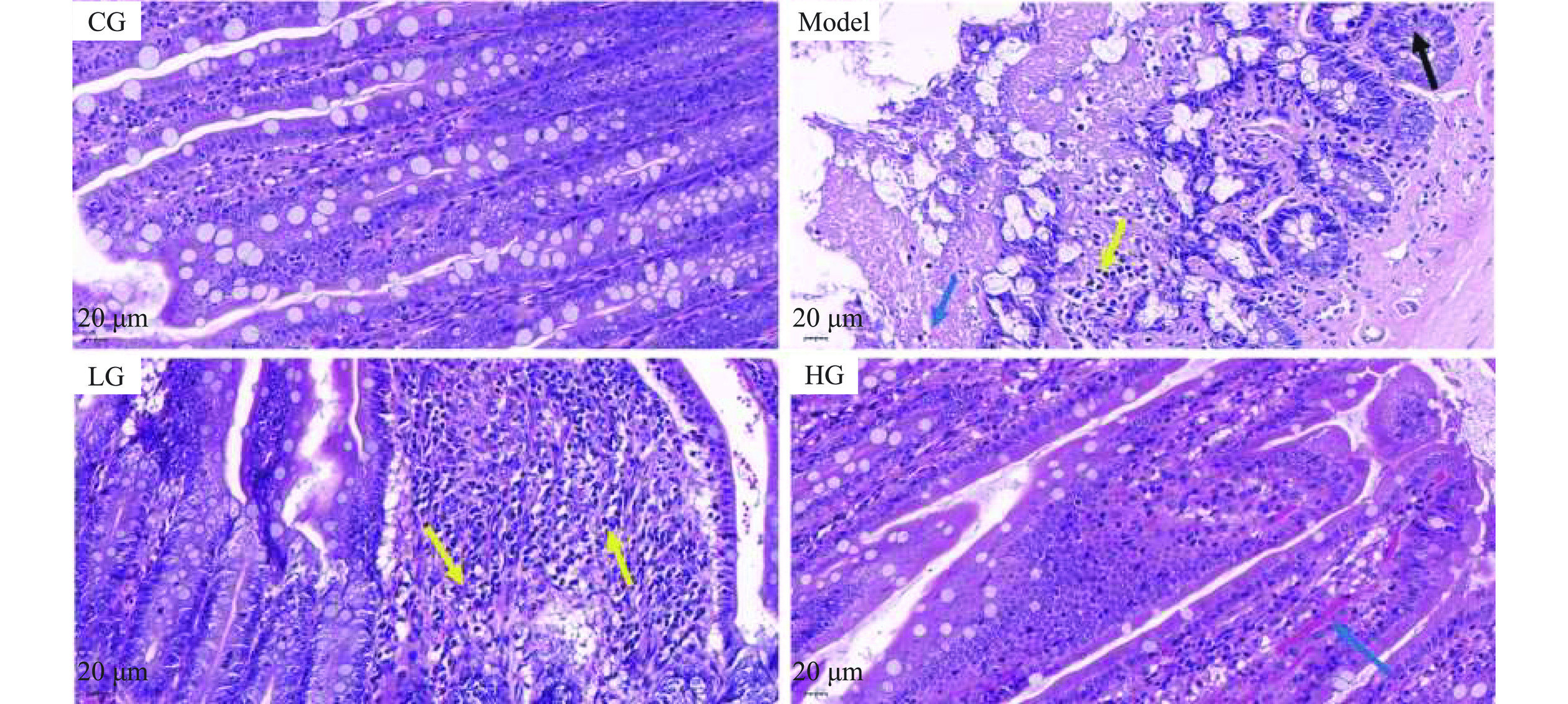 α), glucagon-like peptide-1 (GLP-1), and peptide YY (PYY) were assayed. Histopathological analysis of the ileum was performed to assess tissue damage and cell apoptosis, and the expressions of inflammation- and apoptosis-related genes such as nuclear factor NF-