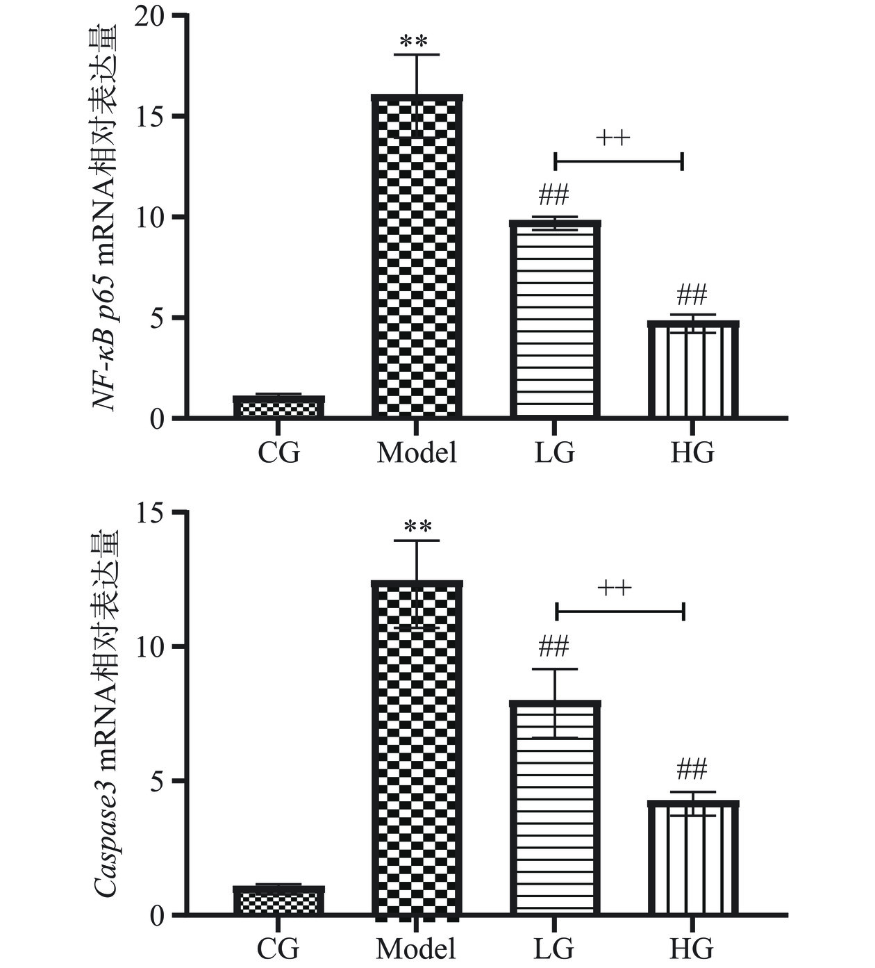 κB p65), BCL2-associated X protein (Bax), B-cell lymphoma-2 (Bcl-2), Pro Caspase3, and Cleaved Caspase3 were measured in the intestinal tissue. Results: Compared with the model group, the rats in the administration group exhibited a highly significant reduction in food intake (