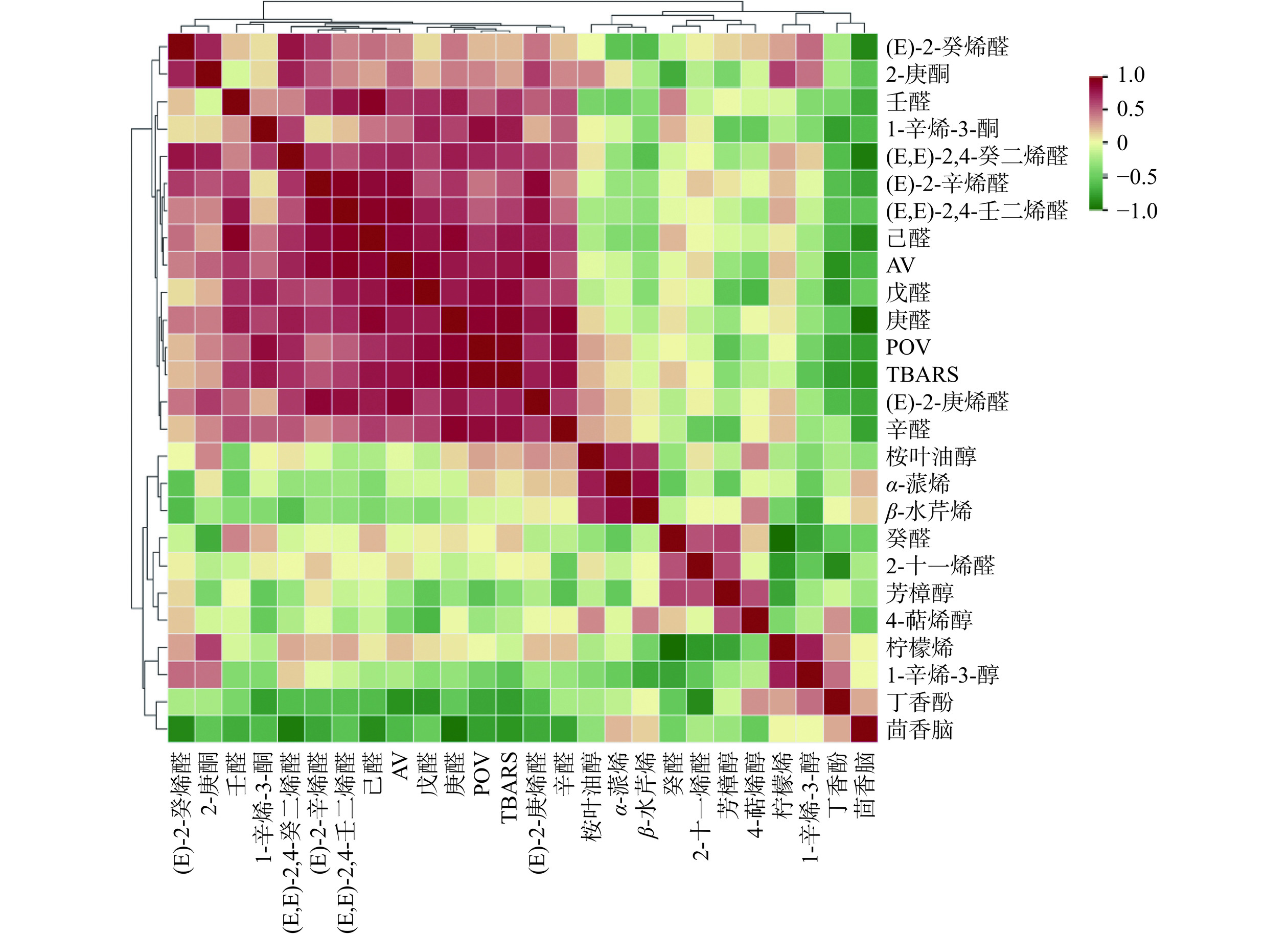 P<0.05). The correlation analysis showed that the main factors that produce warmed-over flavor were (E)-2-decenal, 2-heptanone, nonylaldehyde, 1-octene-3-ketone, (E,E)-2,4-decenal, hexal, pentaldehyde, heptanal, (E)-2-heptenal and octanal, which were positively correlated with acid value, peroxide value and TBA value. In summary, the key flavor factors of the 7 kinds of pre-prepared steamed pork with preserved vegetable were related to overcooked taste, and it was speculated that the overcooked taste of pre-prepared steamed pork with preserved vegetable was related to the higher oxidation degree of oil. The key flavor factors, electronic tongue and overripe taste evaluation indexes obtained in this study provide the basis for the establishment of flavor quality system and overripe taste control of pre-prepared steamed pork with preserved vegetable.