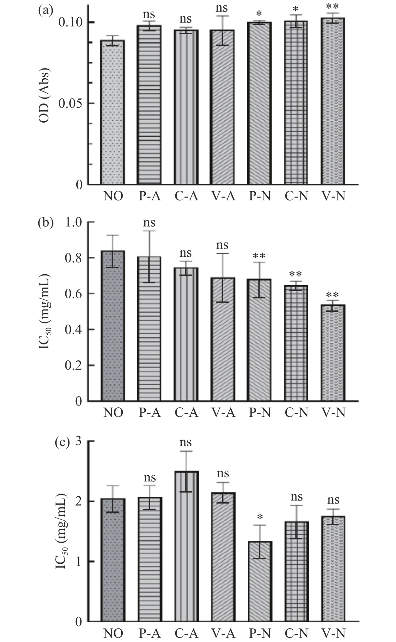2+ and DPPH radical scavenging capacity of polysaccharides were the highest in the V-N group, amounting to 0.103±0.003 (Abs) and 0.540±0.022 (mg/mL) (IC