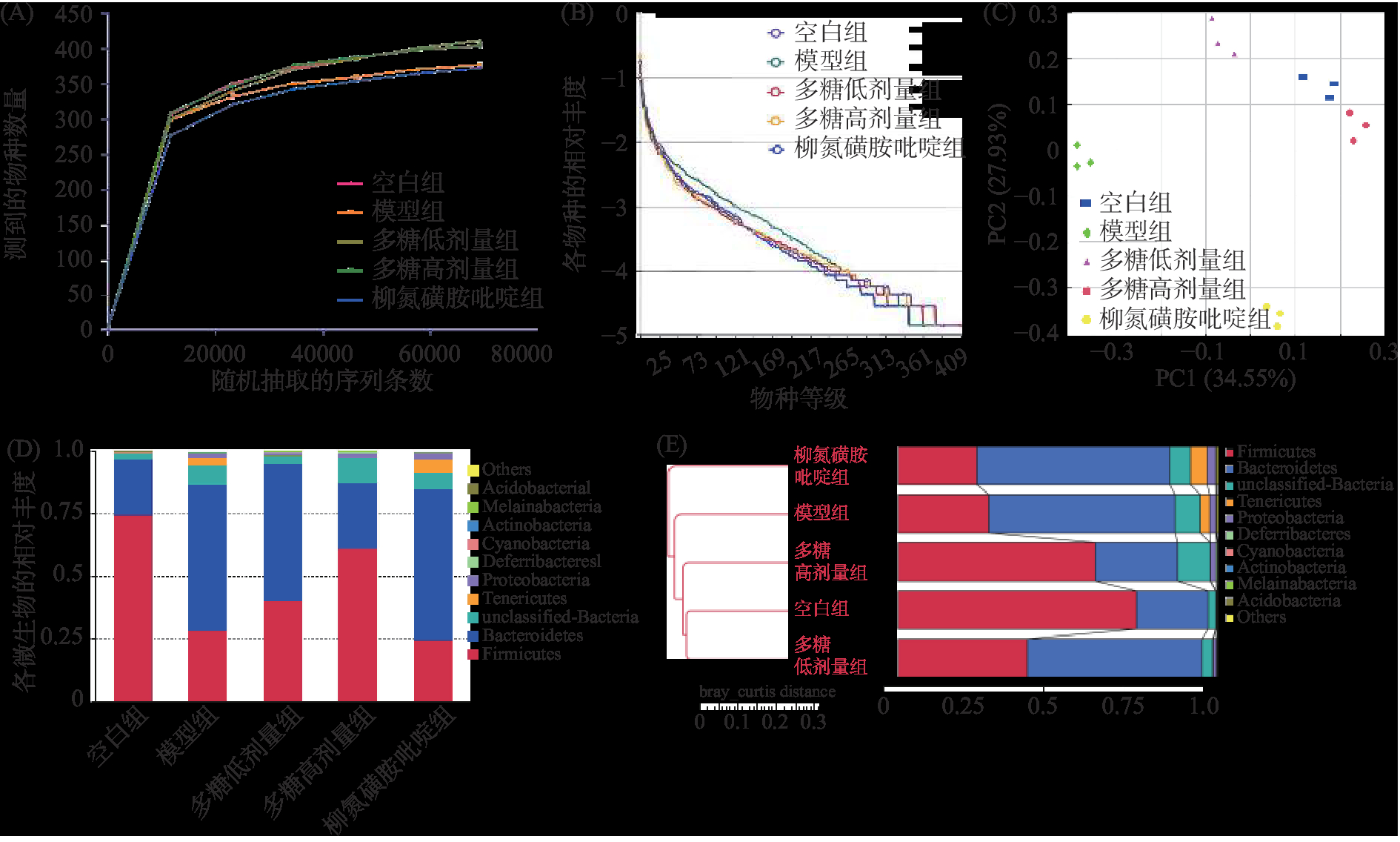 β) and interleukin-6 (IL-6) contents and detecting the liver and kidney biochemical indexs levels alanine aminotransferase (ALT), aspartate aminotransferase (AST), creatinine (CR) and blood urea nitrogen (BUN) in serum by ELISA method, using 16S rRNA phylogenetic sequencing to detect the changes of intestinal flora in rat feces.