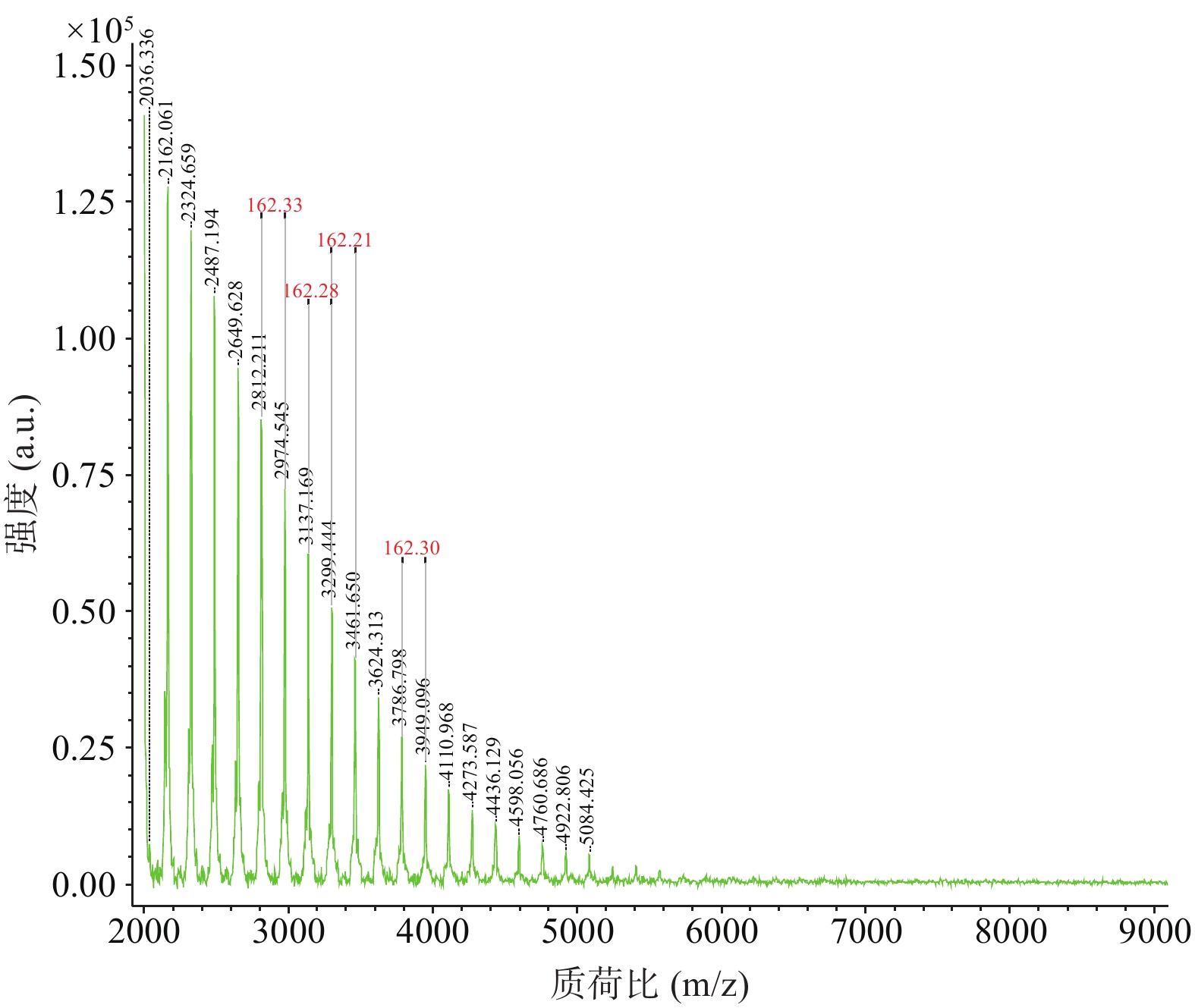 Taraxacum kok-saghyz Rodin root were as follows: Ultrasonic power 230 W, ultrasonic time 34 min, ultrasonic temperature 61 ℃, liquid-solid ratio 30:1 (mL:g), and the extraction rate of inulin was 20.14%±0.19%. The calcium hydroxide-phosphoric acid method, trichloroacetic acid method and Sevage method were used for protein purification, and the results showed that the calcium hydroxide-phosphoric acid method had the best effect, with a protein clearance rate of 90.78% and an inulin loss rate of 26.44%. Inulin with a purity of 80.8% was obtained after protein purification, decolorization, alcohol precipitation and vacuum freeze drying, was a white solid powder. The obtained inulin was characterized and analyzed by MALDI-TOF MS, which determined that the molecular weight of the monomer was 162, the molecular weight of the end group was 179, and the degree of polymerization can be detected in the range of 2 to 30. This study provides a theoretical basis for the comprehensive utilization of