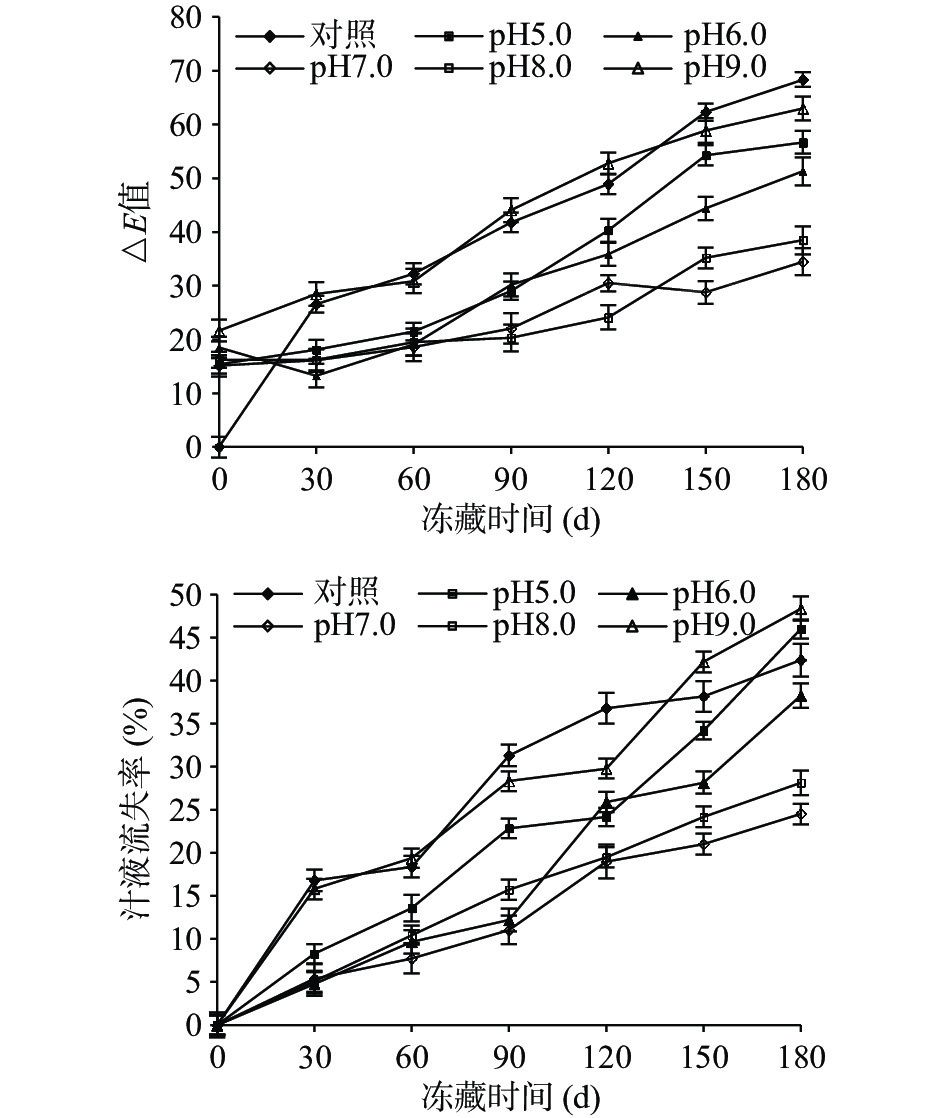 E value and drip loss from large to small was blanching solution pH>blanching time>frozen temperature. The optimal process conditions were as follows : Blanching solution pH7.50, blanching time 4.00 min, and frozen temperature −30.00 ℃. Under these conditions, the △