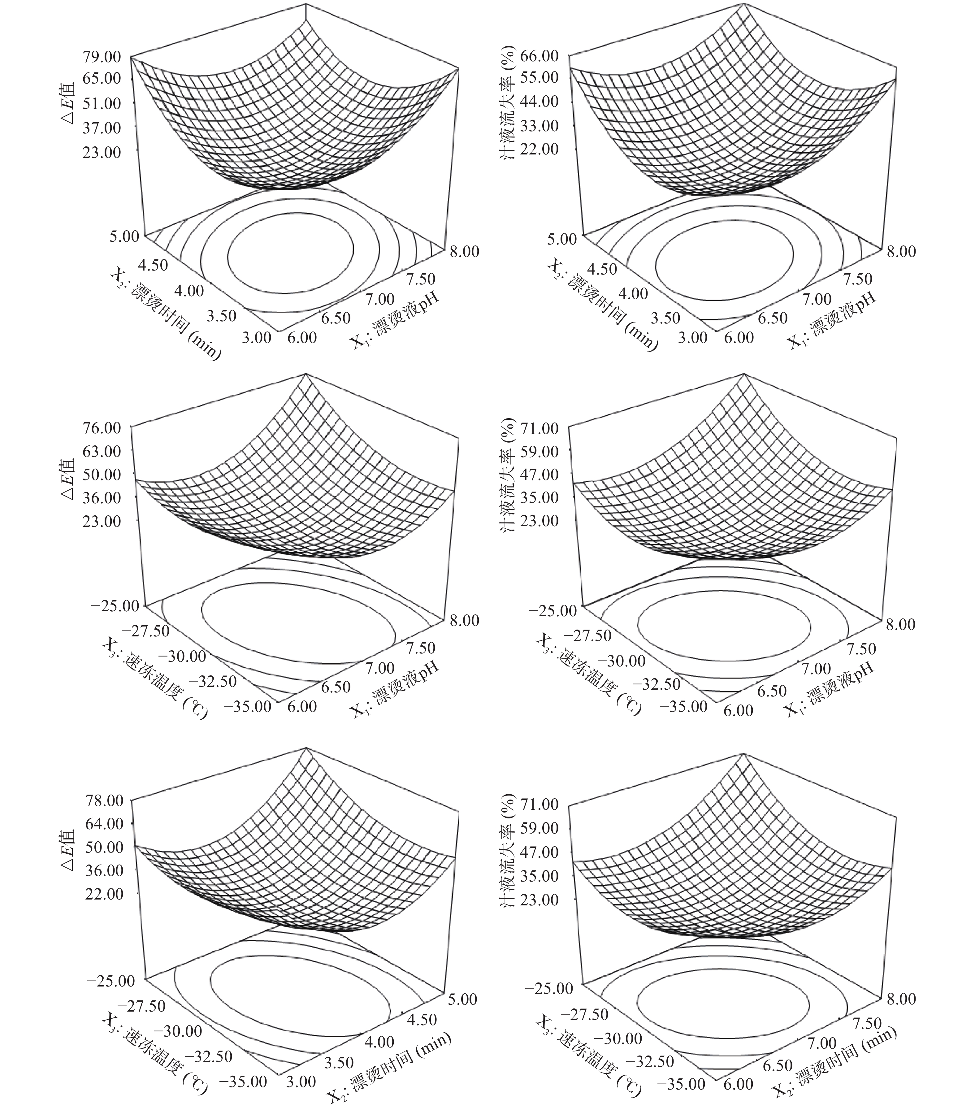 E value) and drip loss were investigated by single factor experiments, and the processing technology was optimized by response surface methodology (RSM). The results showed that the influence degree of each factor on △