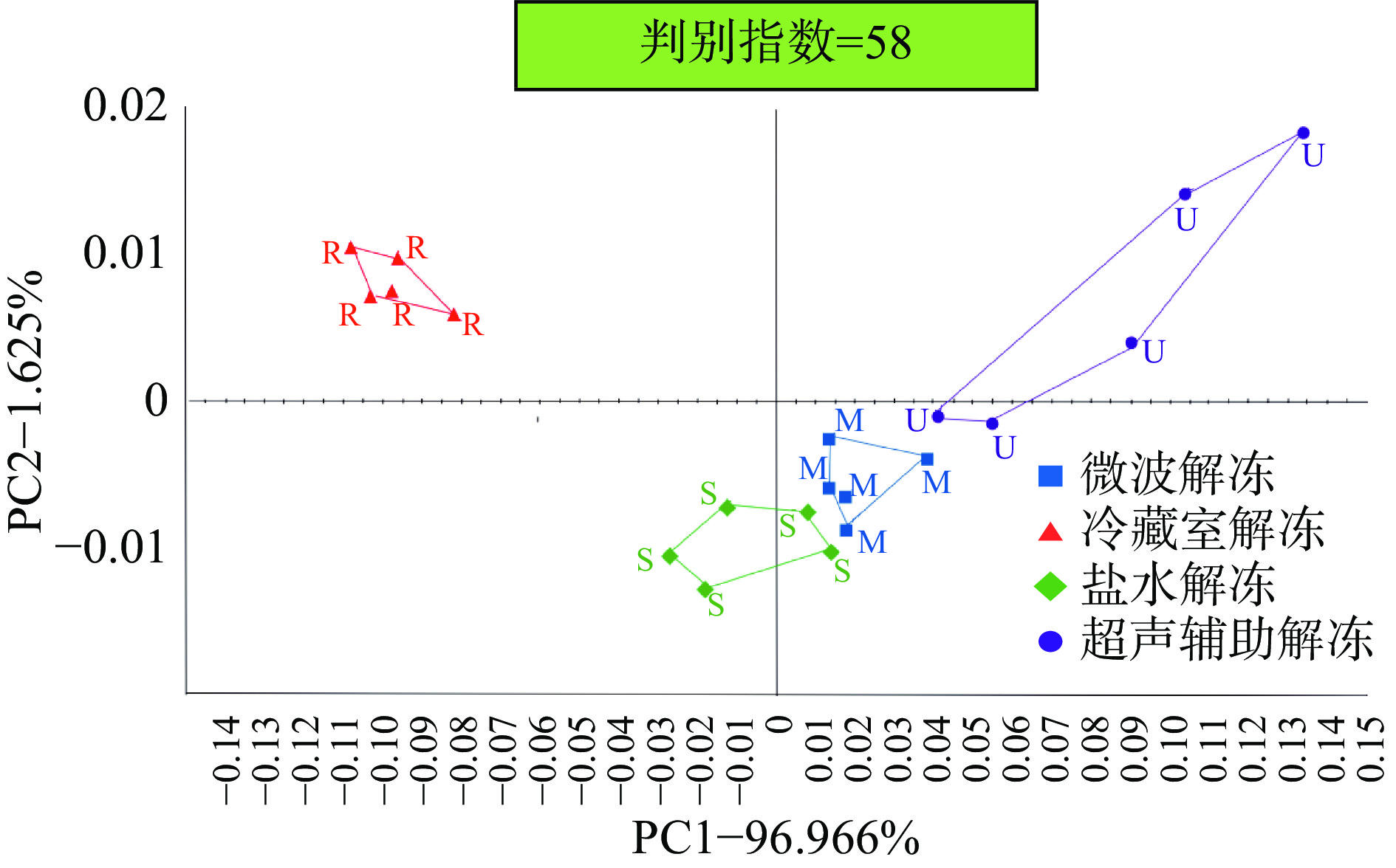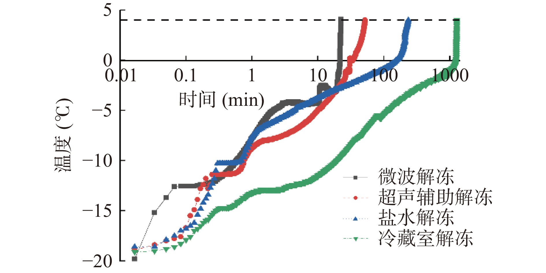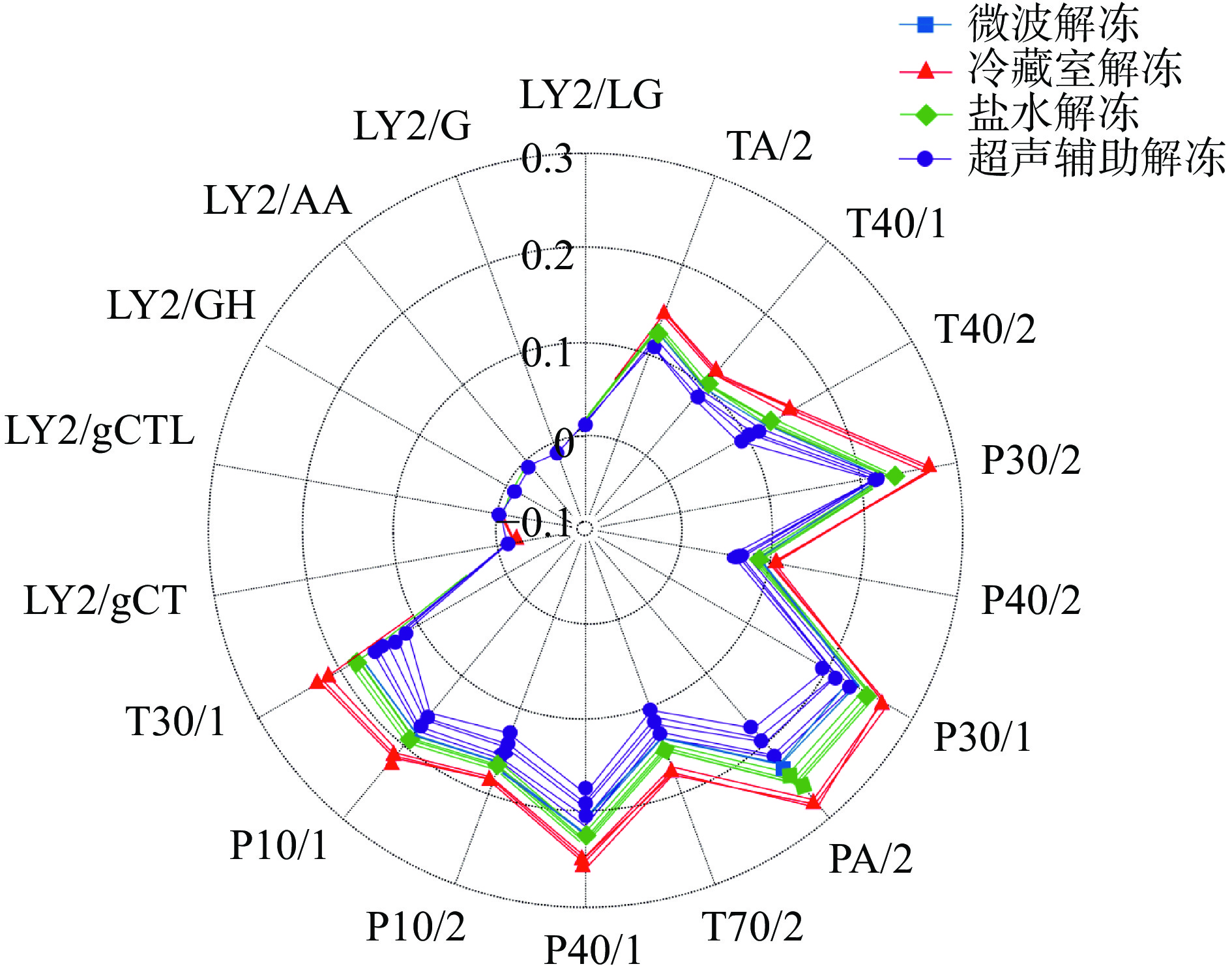 In order to investigate the effects of different thawing methods (microwave thawing, ultrasonic-assisted thawing, saline thawing and low temperature thawing) on the freshness and volatile flavor compounds of anchovy, the thawing time, water-holding capacity, total viable counts and volatile base nitrogen (TVB-N) of the samples with different thawing methods were analyzed, and electronic nose analysis and detection of volatile flavor compounds was also performed. The results showed that the microwave thawing time was the shortest (22.4 min). Samples thawed in microwave oven maintained the largest water holding capacity, total viable counts and TVB-N value. The ultrasonic-assisted thawing group had the lowest total viable counts and TVB-N value and highest sensory score. The electronic nose could distinguish the odor of anchovy under different thawing methods. The odor of the refrigerator thawing was the biggest difference with the other three groups and the freshness was poor. 36, 41, 45 and 43 volatile compounds were identified in anchovy under four thawing methods, mainly aldehydes and alcohols. Among them, hexanal, heptanal, octanal, nonanal, decanal, phenylacetaldehyde, 1-penten-3-ol, 1-octen-3-ol, benzene and trimethylamine played an important role in the overall flavor formation of anchovy after thawing. Combined with thawing efficiency, freshness index and volatile flavor compounds, ultrasonic assisted thawing was determined to be a better thawing method for frozen anchovy. This study can provide a theoretical basis for processing, transportation and comprehensive utilization of anchovy.