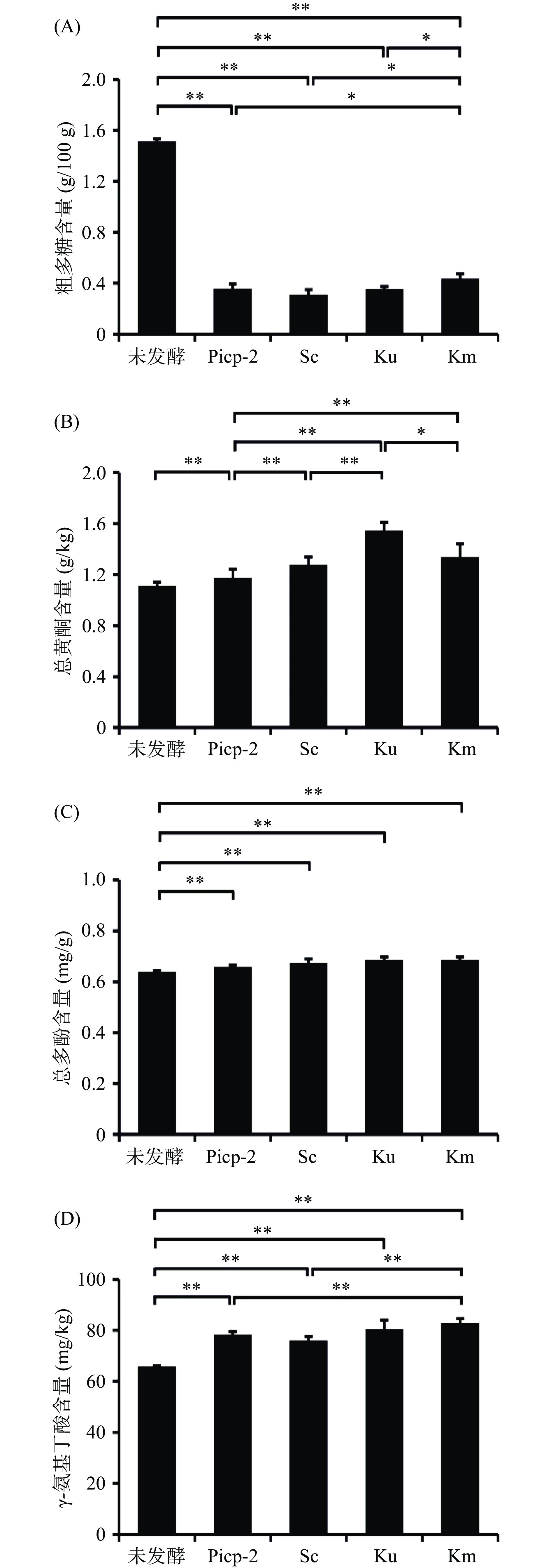 Kazachstania unispora (Ku). Fermentation could increase the contents of total flavonoids, polyphenols and