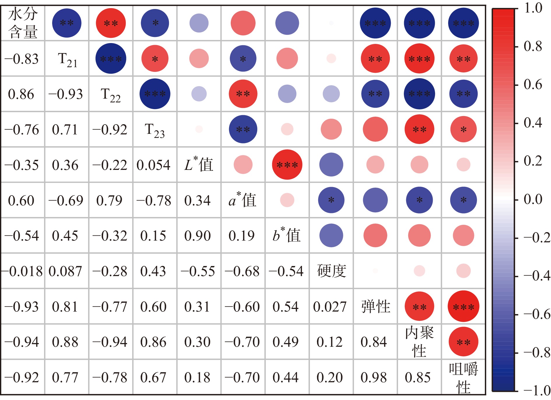 22 was negatively correlated with hardness, elasticity, cohesiveness and chewiness (